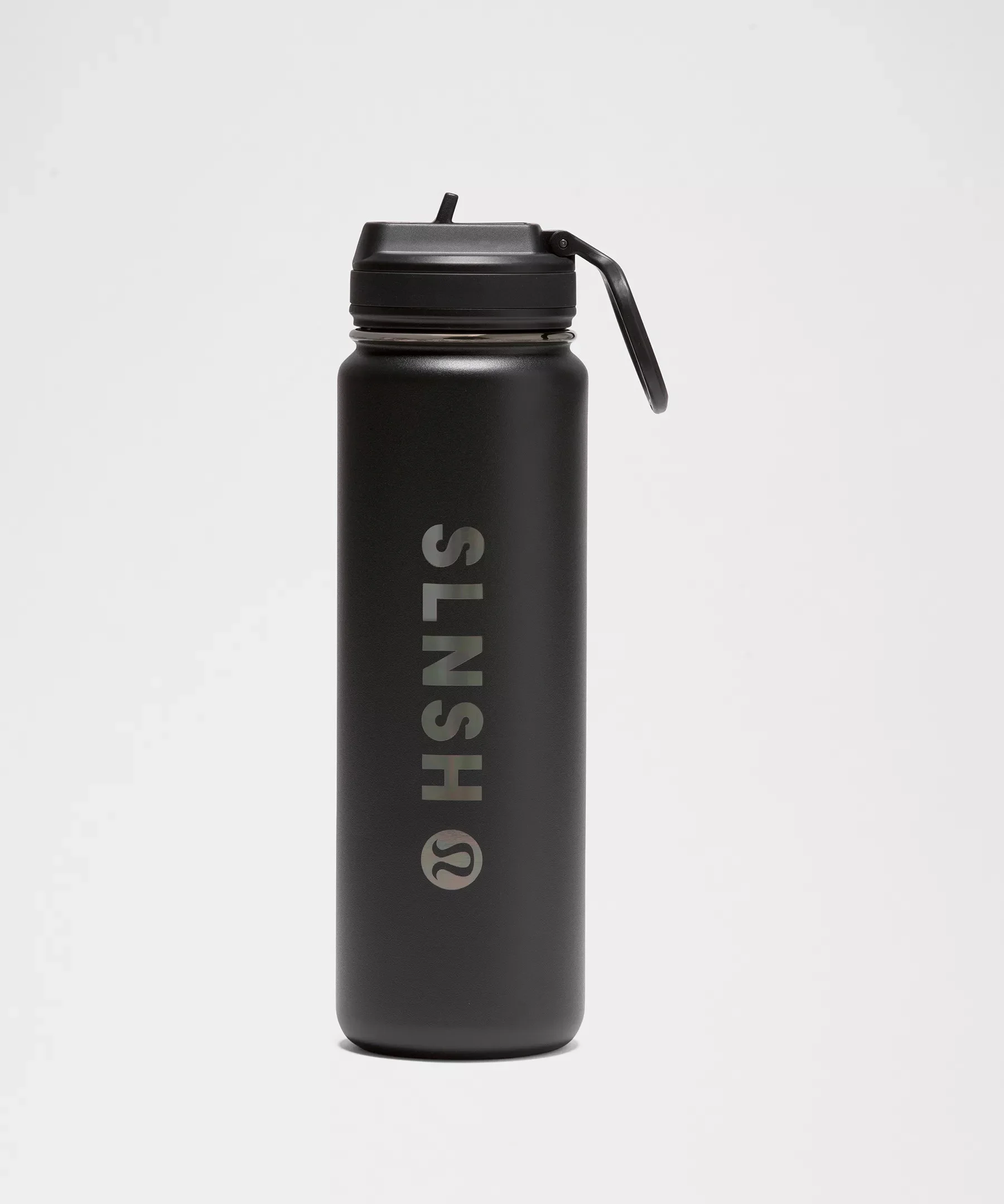 Designed for Casual Dimensions and Volume - Dimensions: 26.4cm x7.7cm (10.4" x 3") - Volume: 24oz (710ml) Product Features - Folding straw lid for easy sipping - Vacuum insulation keeps drink ice cold - No-flavour transfer keeps contents tasting fresh - Powder-coated, double-wall design keeps bottle sweat free - Care Instructions: Wash before use. Lid is dishwasher-safe on top rack only. Please hand wash the body of the bottle to preserve the finish. Do not fill with hot water - To deep clean the lid, remove the interior silicone ring and soak in a 2:1 solution of water and vinegar, or cleanse using dish soap. Do not use harsh chemicals like bleach or chlorine - To reassemble, press the ring back into the lid’s open cavity with the tab exposed. Ensure the ring is evenly pressed into the cavity before screwing the lid back on for a secure, leak-proof fit - Fits into most cup holders for in-transit convenience Material and care Materials Band: 100% Silicone - Body: 100% Steel - Top: 100% Polypropylene Care Do Not Use with Hot Water - Handwash Only - Lid - Dishwasher Top Rack - Wash Before Use