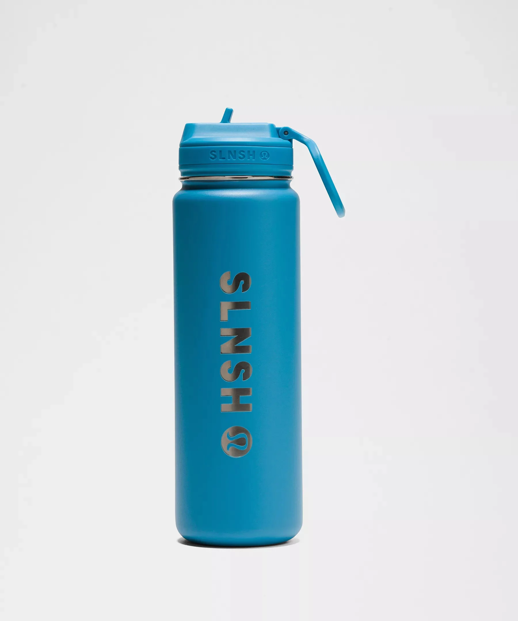 Designed for Casual Dimensions and Volume - Dimensions: 26.4cm x7.7cm (10.4" x 3") - Volume: 24oz (710ml) Product Features - Folding straw lid for easy sipping - Vacuum insulation keeps drink ice cold - No-flavour transfer keeps contents tasting fresh - Powder-coated, double-wall design keeps bottle sweat free - Care Instructions: Wash before use. Lid is dishwasher-safe on top rack only. Please hand wash the body of the bottle to preserve the finish. Do not fill with hot water - To deep clean the lid, remove the interior silicone ring and soak in a 2:1 solution of water and vinegar, or cleanse using dish soap. Do not use harsh chemicals like bleach or chlorine - To reassemble, press the ring back into the lid’s open cavity with the tab exposed. Ensure the ring is evenly pressed into the cavity before screwing the lid back on for a secure, leak-proof fit - Fits into most cup holders for in-transit convenience Material and care Materials Top: 100% Polypropylene - Body: 100% Steel - Band: 100% Silicone Care Do Not Use with Hot Water - Handwash Only - Lid - Dishwasher Top Rack - Wash Before Use