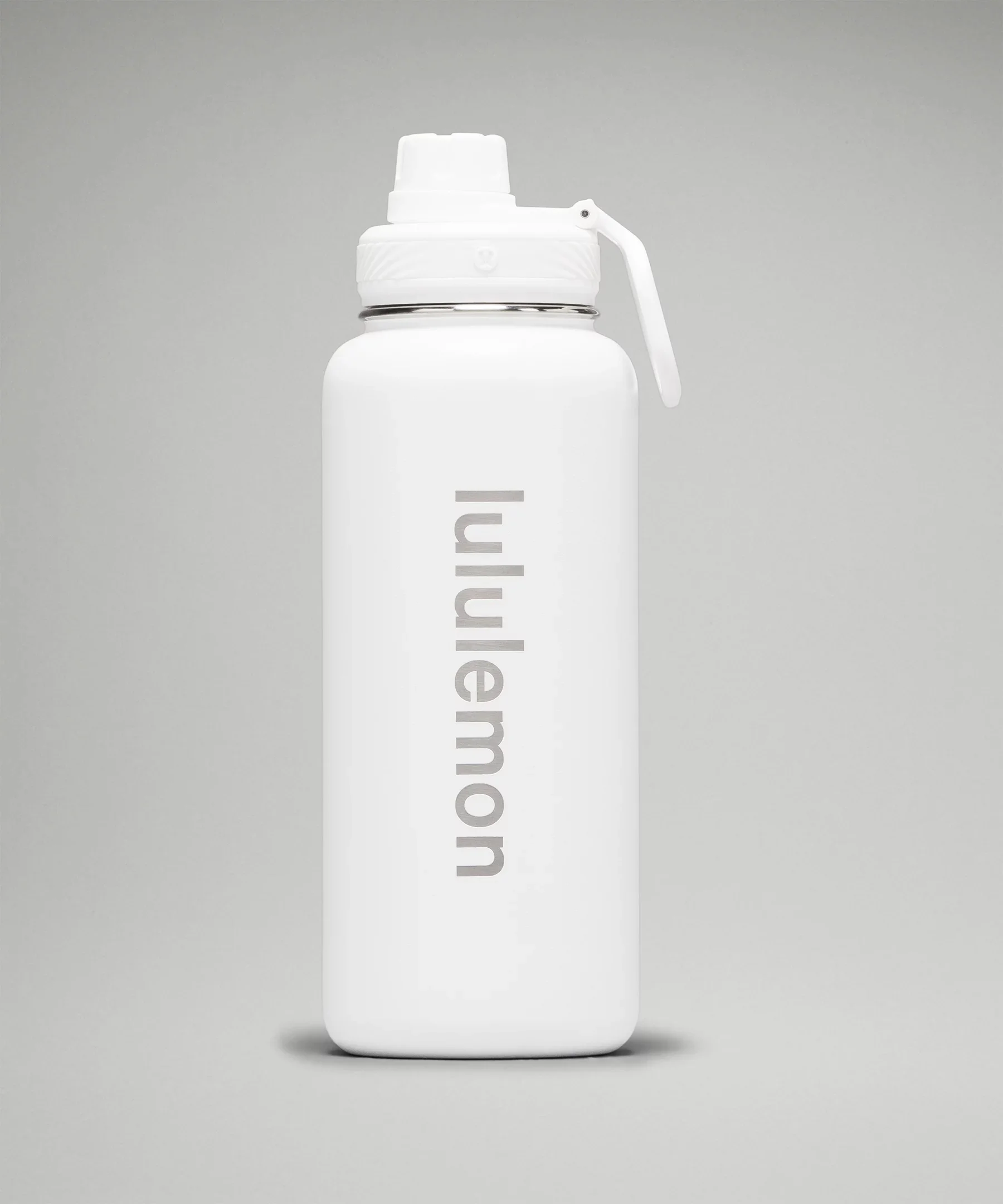 Dimensions and Volume Dimensions: 26.4cm x 9.5cm (10.4" x 3.8") Volume: 32oz (946ml) Product Features Lid is easy to open and leak-proof Double-wall design keeps bottle sweat-free Vacuum insulation keeps drink ice cold No-flavour transfer keeps contents tasting fresh Powder coated for sure grip, even when hands are sweaty Care Instructions: Wash before use. Lid is dishwasher-safe on top rack only. Please hand wash the body of the bottle to preserve the finish. Do not fill with hot water To deep clean the lid, remove the interior silicone ring and soak in a 2:1 solution of water and vinegar, or cleanse using dish soap. Do not use harsh chemicals like bleach or chlorine To reassemble, press the ring back into the lid’s open cavity with the tab exposed. Ensure the ring is evenly pressed into the cavity before screwing the lid back on for a secure, leak-proof fit Material and care Materials Band: 100% Silicone Top: 100% Polypropylene Body: 100% Steel Care Handwash Only