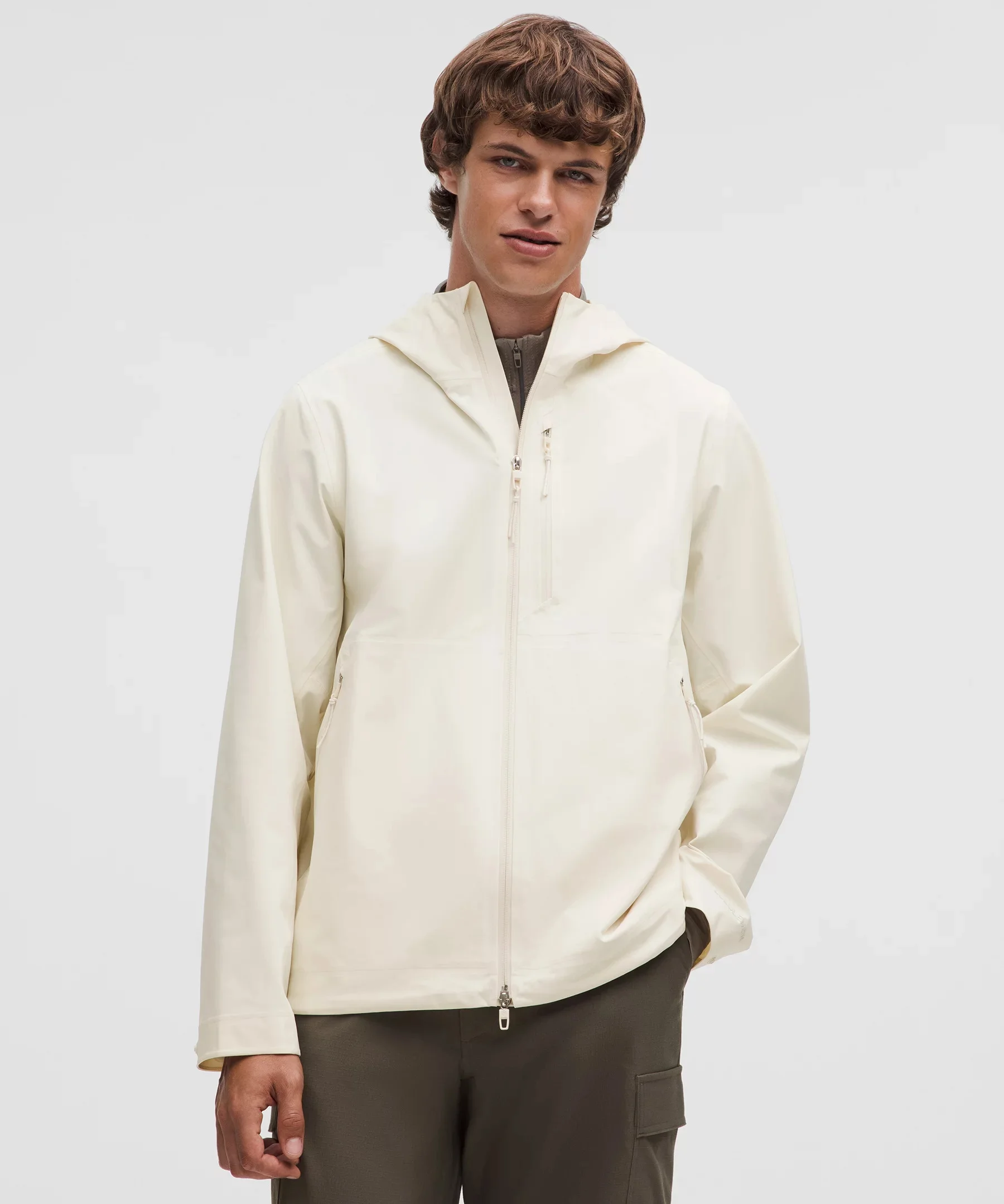 Designed for Hiking Waterproof, Glyde™ Fabric - Waterproof - Four-way stretch - Breathable - Windproof - Seam-sealed for protection against the rain Relaxed Fit, Hip Length - Relaxed fit feels roomy and can be worn over larger layers. Size down if you prefer a slimmer fit Product Features - Zippered hand pockets with hidden phone sleeve - Zippered chest pocket - Zippered vents under the arms - Hood cinches at the back with a structured brim to help keep rain off your face - Adjustable cuffs - Cinchable hem - Fits comfortably over an insulated mid layer Material and care Materials Body: Face: 84% Polyester, 16% ElastaneMiddle: 100% PolyurethaneBack: 100% Polyester - Mesh: 90% Recycled Polyester10% Lycra Elastane Care Wash With Like Colors - Do Not Bleach - Tumble Dry Low - Do Not Iron - Do Not Dry Clean - Wash With Like Colors