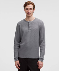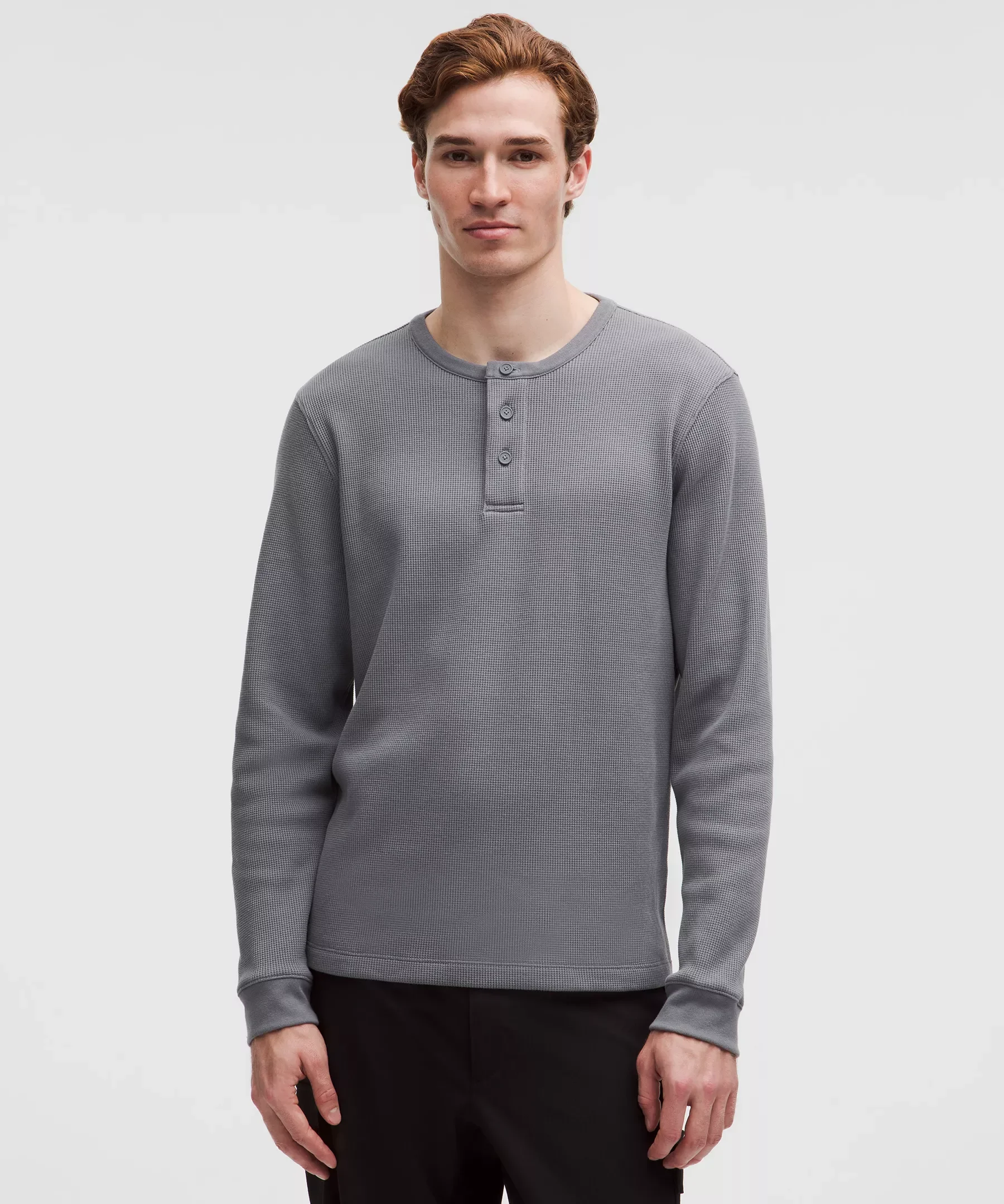 Cotton-Blend Waffle Knit Long-Sleeve Henley