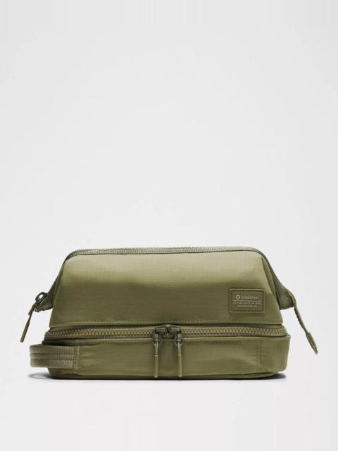 Designed for Casual Water-Repellent Fabric - Water-repellent fabric lining is easy to clean Measurements - Dimensions: W 25cm x D 13cm x H16cm (9.8" x 5.1" x 6.3") - Volume: 4.5L Product Features - Grab handle for easy carrying - Zippered top compartment has a structured wide-mouth opening that makes toiletries easy to find - Interior mesh pockets in top compartment keep toiletries organized - Two-way zippered bottom compartment opens wide so you can find what you need Material and care Materials Lining: Face: 100% Thermoplastic PolyurethaneMiddle: 100% PolyesterBack: 100% Thermoplastic Polyurethane - Lining: 100% Recycled Polyester - Body: 100% Nylon - Mesh: 100% Recycled Polyester Care Do Not Wash - Do Not Bleach - Do Not Tumble Dry - Do Not Iron - Do Not Dry Clean - Spot Clean