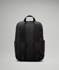 Water-Repellent, Tech Canvas Fabric Water-repellent 100% of the polyester in this product is recycled (excluding trims) Measurements Dimensions: 29cm x 15cm x 43cm (11.4" x 5.9'" x 16.9") Volume: 22L Product Features Spacious, front zippered pocket Side pockets for quick access to water bottle and small items Interior padded pocket fits a 16" laptop Material and care Materials Body: 100% Recycled Polyester Lining: 100% Recycled Polyester Care Spot clean Do not wash Do not bleach Do not tumble dry Do not iron Do not dry clean Imported