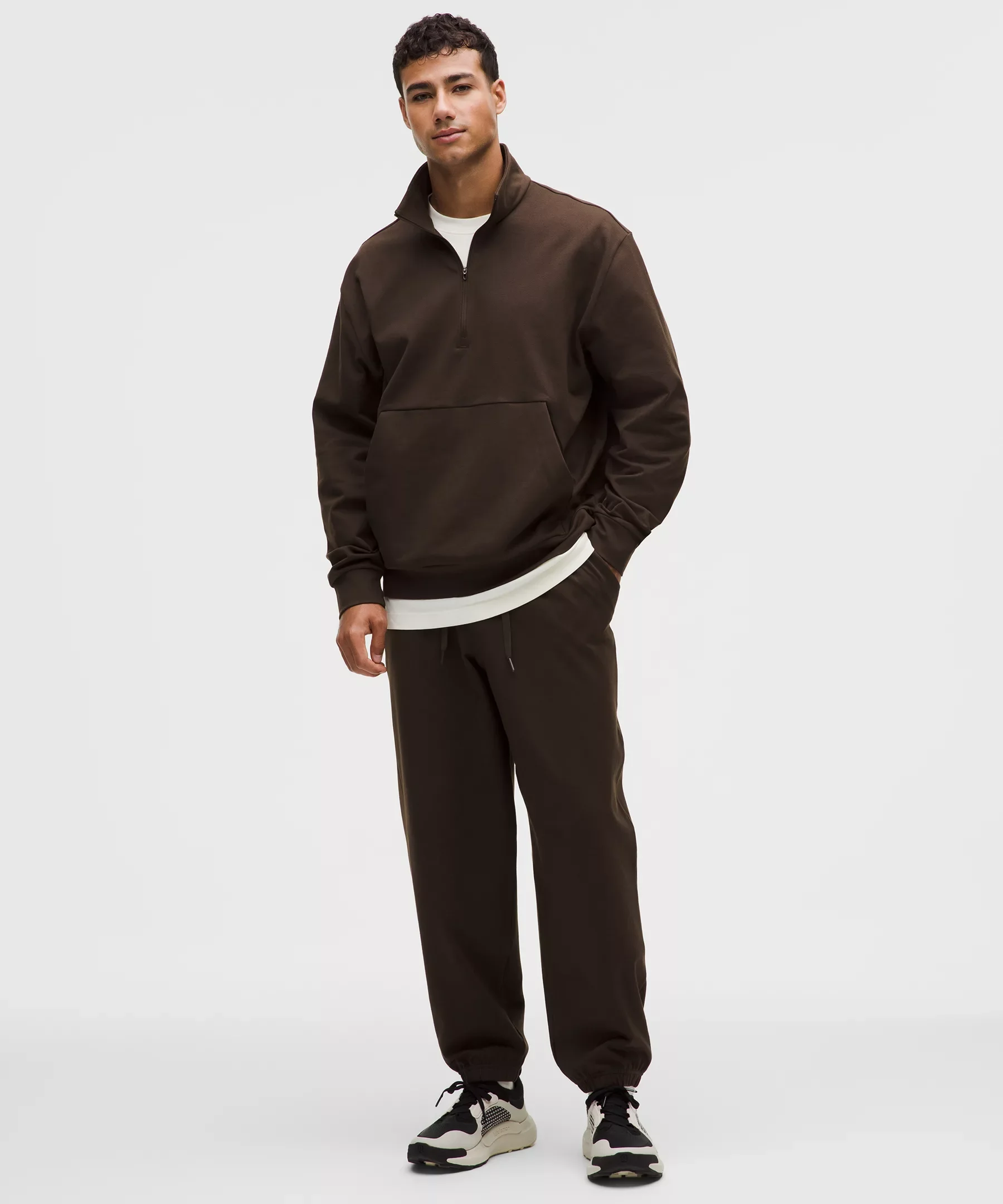 Designed for Casual Heavyweight, Soft Jersey Fabric - Heavyweight - Four-way stretch - Luxuriously soft brushed interior - Added elastane improves stretch and shape retention Relaxed Fit - Roomy fit through glutes and thighs - Intended to sit at ankle for 32"-34" inseam Product Features - Hand pockets with hidden phone and coin sleeves - Zippered back pocket - Waistband drawcord can be worn inside or out Material and care Materials Pocket Lining: 82% Polyester (recycled)18% Elastane - Body: 88% Polyester (recycled)12% Elastane Care Machine Wash Cold - Do Not Bleach - Tumble Dry Low - Do Not Iron - Do Not Dry Clean - Wash With Like Colors