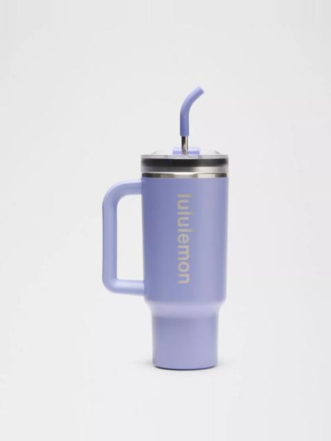 Designed for Casual Dimensions and Volume - Dimensions: 25.4cm height x 7.6cm base (10" height x 3" base) - Volume: 40oz (1.2L) Product Features - Double-walled, stainless steel design keeps your drink ice cold - Stainless steel straw comes with a removable silicone tip - Comfortable ergonomic handle - Ambidextrous screw-top lid has a secure lid flap for quick sips and is leak-proof when straw is removed - Fits most cup holders - Built-in silicone coaster - Powder coated for a sure grip, even with sweaty hands - Care Instructions: Wash before use. Please hand-wash the body of the tumbler to preserve the finish. Lid is dishwasher safe on top rack only. Do not put in the microwave or freezer. Always use caution when handling hot beverages. Material and care Materials Outer Handle: 100% Polypropylene - Body: 100% Steel - Bottom: 100% Silicone - Top: 100% Tritan Copolyester Care Body - Hand Wash Only - Do Not Use with Hot Water - Lid - Dishwasher Top Rack - Wash Before Use