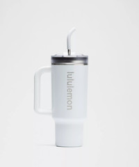 Designed for Casual Dimensions and Volume - Dimensions: 25.4cm height x 7.6cm base (10" height x 3" base) - Volume: 40oz (1.2L) Product Features - Double-walled, stainless steel design keeps your drink ice cold - Stainless steel straw comes with a removable silicone tip - Comfortable ergonomic handle - Ambidextrous screw-top lid has a secure lid flap for quick sips and is leak-proof when straw is removed - Fits most cup holders - Built-in silicone coaster - Powder coated for a sure grip, even with sweaty hands - Care Instructions: Wash before use. Please hand-wash the body of the tumbler to preserve the finish. Lid is dishwasher safe on top rack only. Do not put in the microwave or freezer. Always use caution when handling hot beverages. - Always use caution when handling hot beverages. Do not close the lid if contents exceed 165°F (73°C) Material and care Materials Top: 100% Tritan Copolyester - Outer Handle: 100% Polypropylene - Bottom: 100% Silicone - Body: 100% Steel Care Body - Hand Wash Only - Do Not Use with Hot Water - Lid - Dishwasher Top Rack - Wash Before Use