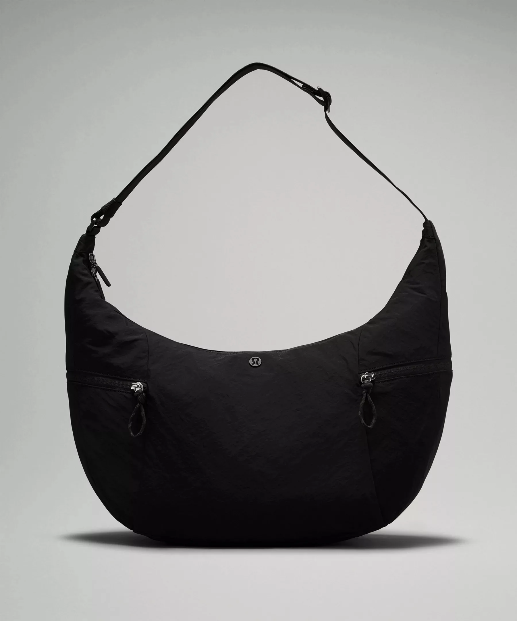Water-Repellent Fabric Water-repellent 100% of the polyester and nylon in this product is recycled (excluding trims) Measurements Dimensions: 45cm x 12.5cm x 39cm (17.7" x 4.9" x 15.4") Volume: 13L Product Features Adjustable shoulder strap for comfortable carrying Zippered exterior pockets Easy-access, exterior pocket for your essentials Zippered main compartment Interior pockets to organize your small items of importance Care Spot clean Do not wash Do not bleach Do not tumble dry Do not iron Do not dry clean Imported
