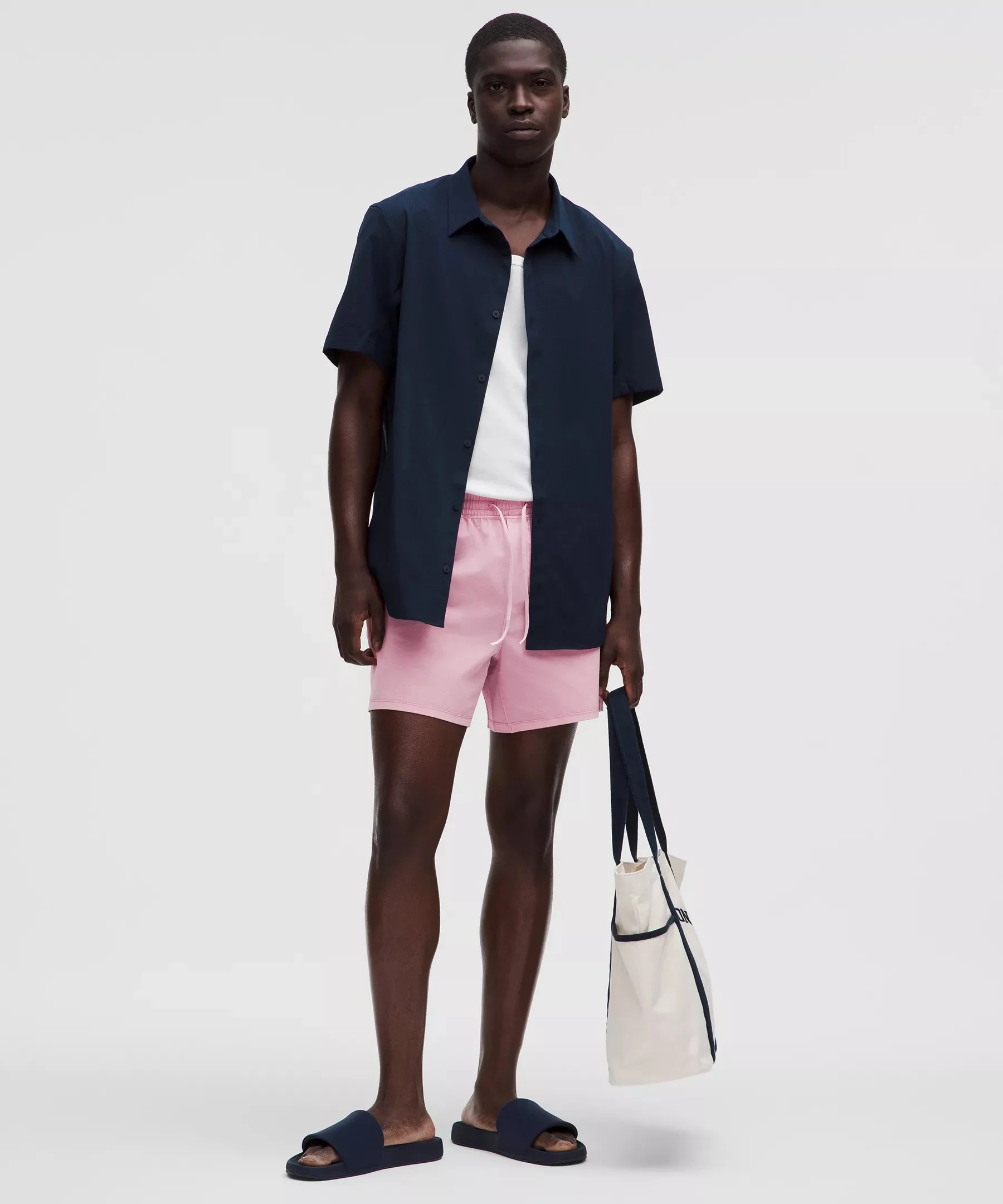 Designed for Swim Chlorine-Resistant Fabric - Chlorine-resistant - Lightweight - Four-way stretch - Our dyeing technique creates a unique result on each garment. Wash separately to avoid dye transfer - This product contains recycled polyester and nylon made from repurposed plastic waste Classic Fit, 5" Length - Streamlined fit that gives glutes and thighs breathing room Product Features - Hand pockets with hidden phone sleeve - Back zippered pocket with drainage hole and key loop - Drawcord to customize fit - Silicone artwork on drawcord provides extra grip in the water Material and care Materials Inner Waistband: 73% Nylon27% Xtra Life Lycra Elastane - Body: 52% Recycled Polyester48% Elastomultiester - Pockets: 80% Recycled Nylon20% Elastane Care Machine Wash Cold - Do Not Bleach - Tumble Dry Low - Do Not Iron - Do Not Dry Clean - Wash Separately, Turn Garment Inside Out