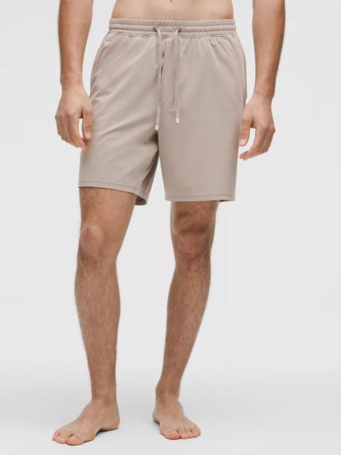 Designed for Swim Chlorine-Resistant Fabric - Chlorine-resistant - Lightweight - Four-way stretch - Our dyeing technique creates a unique result on each garment. Wash separately to avoid dye transfer - This product contains recycled polyester and nylon made from repurposed plastic waste Classic Fit, 7" Length - Streamlined fit that gives glutes and thighs breathing room Product Features - Hand pockets with hidden phone sleeve - Back zippered pocket with drainage hole and key loop - Drawcord to customize fit - Silicone artwork on drawcord provides extra grip in the water Material and care Materials Inner Waistband: 73% Nylon27% Xtra Life Lycra Elastane - Pockets: 80% Recycled Nylon20% Elastane - Body: 52% Recycled Polyester48% Elastomultiester Care Machine Wash Cold - Do Not Bleach - Tumble Dry Low - Do Not Iron - Do Not Dry Clean - Wash Separately - Turn Garment Inside Out