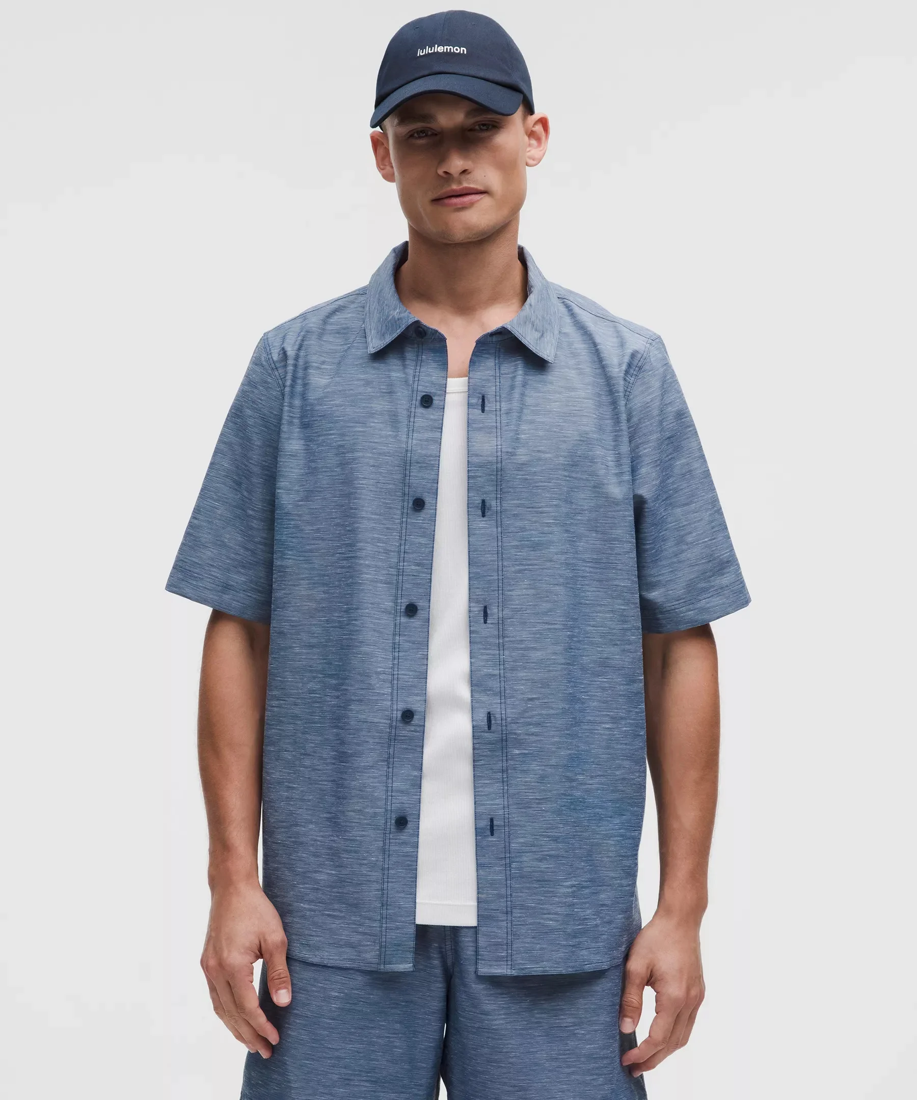 Designed for Casual LuluLinen™ Fabric - Poly-cotton blend with a touch of linen fibres - Sweat-wicking - Quick-drying - 100% of the polyester in this product is recycled (excluding trims) Classic Fit - Designed with room in the chest and at the waist Product Features - Locker loop for easy hanging - Curved hem is notched at both sides Material and care Materials All: 67% Recycled Polyester23% Cotton10% Linen Care Machine Wash Cold - Do Not Bleach - Tumble Dry Low - Do Not Iron - Do Not Dry Clean - Contains biocidal zinc pyrithione (nano) Inhibits odour-causing bacteria - Wash With Like Colors