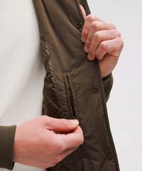 Designed for Casual Water-Resistant Fabric - Water-resistant - Windproof - Soft structure that holds its shape - PrimaLoft® insulation is warm, even when wet - This product contains recycled polyester and nylon made from repurposed plastic waste Classic Fit, Hip Length - Classic fit falls away from your body with room for layering Product Features - Snap-button hand pockets with an internal phone sleeve - Interior zippered chest pocket - Eyelets under the arms for ventilation - Ribbed cuffs, collar, and hem sit close to body - Snap-button front - Mid warmth is designed with zoned RDS Down or PrimaLoft® insulation to regulate body temperature Material and care Materials Rib: 96% Polyester4% Lycra Elastane - Body: 73% Recycled Polyester27% Recycled Nylon - Lining: 100% Nylon - Filling: 100% Recycled Polyester Care Machine Wash Cold - Do Not Bleach - Tumble Dry Low - Do Not Iron - Do Not Dry Clean - Wash With Like Colors