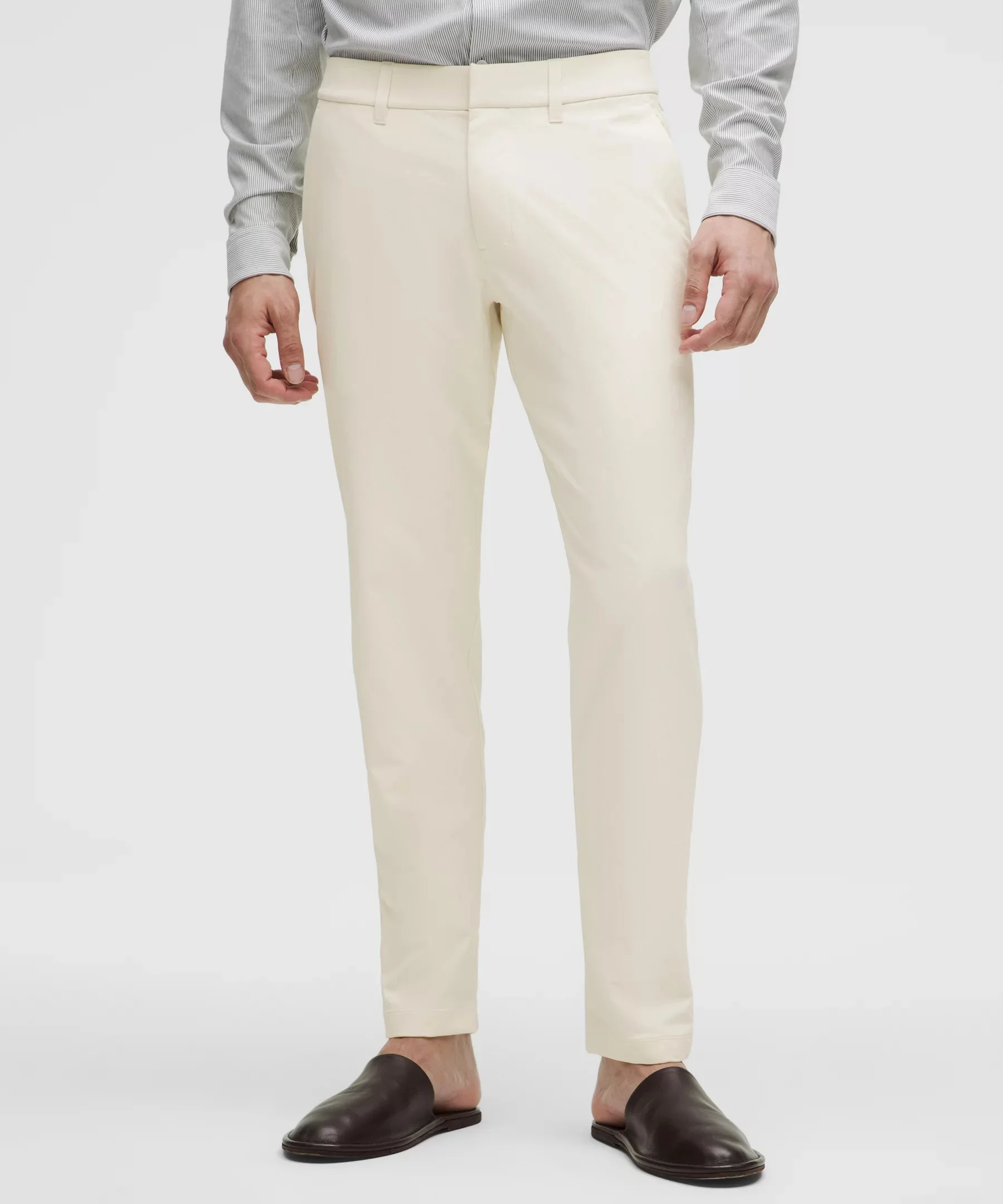 Designed for Casual Softly Textured, Pique Fabric - Softly textured - Two-way stretch - Water-repellent - Wrinkle-free out of the dryer Slim Fit - Slim fit that skims glutes and thighs - Intended to sit just below ankle for 32"-34" inseam Product Features - Front pockets with hidden phone and coin sleeves - Back welt pockets with hidden snaps Material and care Materials Pocket Lining: 100% Recycled Polyester - Body: 77% Polyester23% Elastomultiester Care Wash With Like Colors - Do Not Bleach - Tumble Dry Low - Do Not Iron - Do Not Dry Clean - Wash With Like Colors