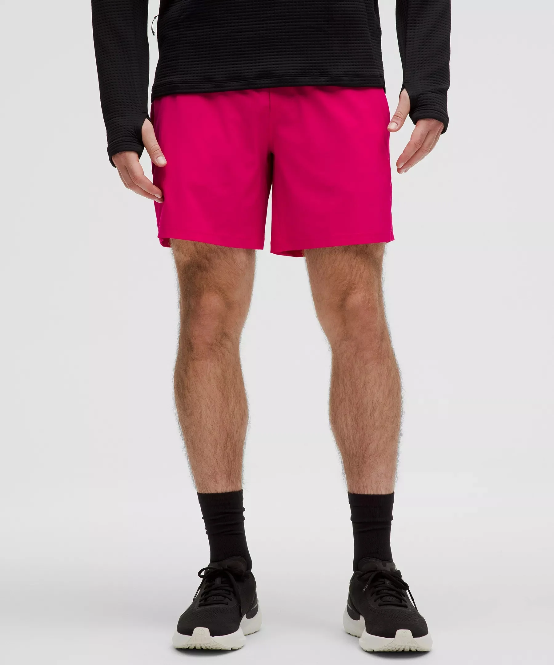 Lightweight, Swift Fabric Lightweight Four-way stretch Sweat-wicking Quick-drying Grid mesh inner waistband feels soft next to skin 100% of the polyester in this product is recycled (excluding trims) Classic Fit, 7" Length Streamlined fit that gives glutes and thighs breathing room Product Features Low-bounce side zippered pocket Front pockets with hidden phone and coin sleeves Material and care Materials Shell Body: 86% Recycled Polyester14% Elastane Back Mesh Panel: 90% Recycled Polyester10% Lycra Elastane Pocket Lining: 100% Recycled Polyester Inner Waistband: 85% Recycled Polyester15% Elastane Care Wash with like colours Machine wash cold Do not bleach Tumble dry low Do not iron Do not dry clean