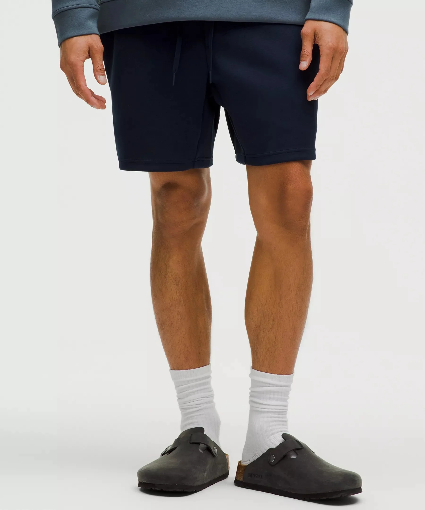 Soft, Modal-Blend Fabric Soft on the outside and smooth on the inside Four-way stretch Quick-drying Stands slightly away from the body with a weighty feel Classic Fit, 7" Length Streamlined fit that gives glutes and thighs breathing room Product Features Hand pockets with hidden phone and coin sleeves Zippered back pocket Waistband drawcord can be worn inside or out Material and care Materials Pocket: 100% Recycled Polyester Body: 58% Recycled Polyester34% Modal8% Elastane Care Wash with like colours Machine wash cold Do not bleach Tumble dry low Do not iron Do not dry clean Imported