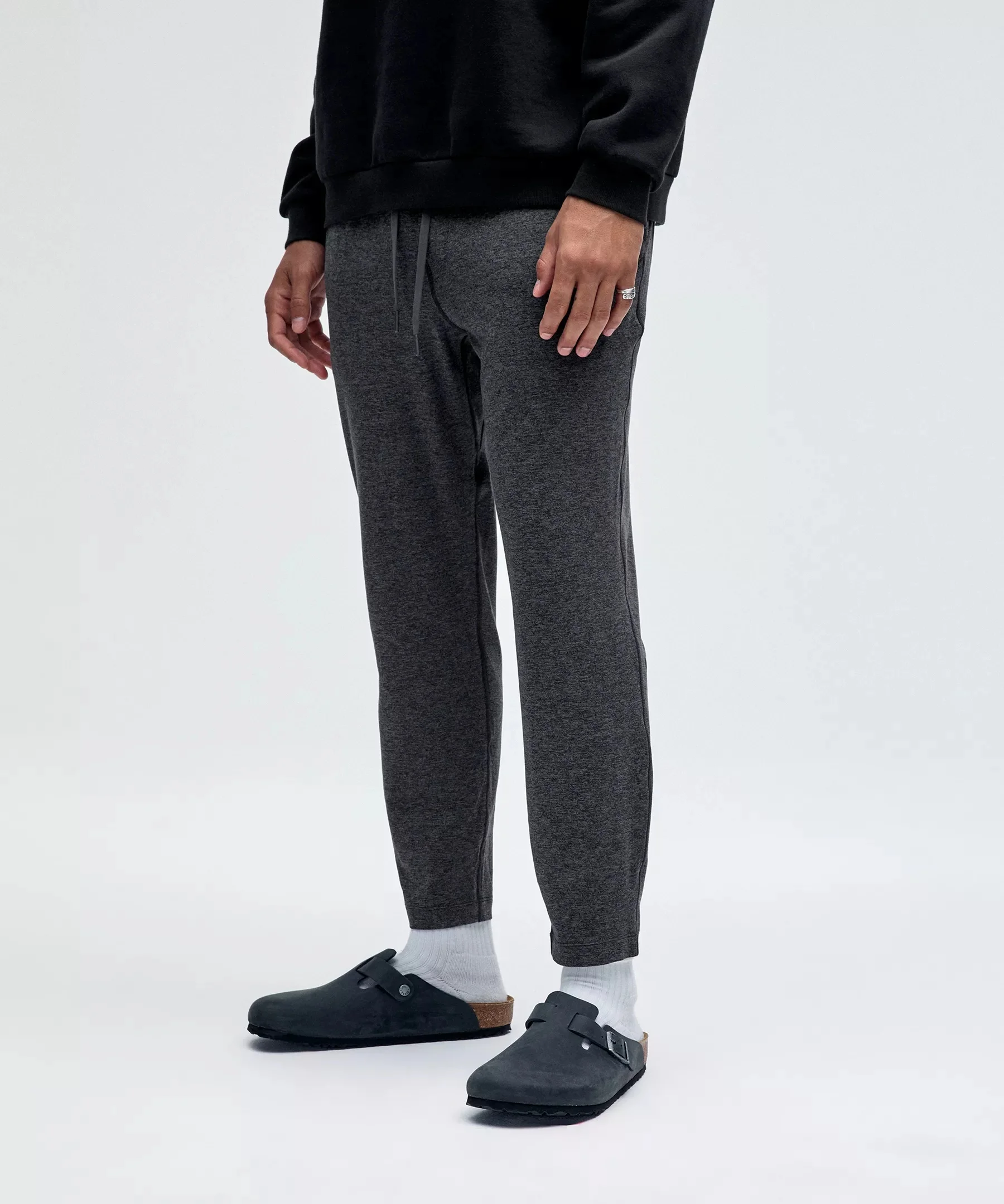 Soft and Stretchy, Jersey Fabric Luxuriously soft, brushed interior Stretchy Lightweight Sweat-wicking Quick-drying Added elastane improves stretch and shape retention This product contains recycled polyester made from repurposed plastic waste Slim-Tapered Fit Streamlined fit that skims glutes and thighs, then tapers to hem Intended to sit at ankle for 36"-38" inseam Product Features Hand pockets with hidden phone and coin sleeves Zippered back pocket Waistband drawcord can be worn inside or out Material and care Materials Pocket lining: 82% Polyester18% Elastane Body: 88% Recycled polyester12% Elastane Care Wash with like colours Machine wash cold Do not bleach Tumble dry low Do not iron Do not dry clean Imported