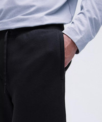 Naturally Breathable, Cotton-Blend Fleece Fabric Naturally breathable Soft against skin Lightweight warmth Classic Fit Streamlined fit that gives glutes and thighs breathing room Intended to sit just below ankle for 36"-38" inseam Product Features Zippered hand pockets Zippered back pocket Waistband drawcord can be worn inside or out Material and care Materials Rib: 97% Cotton3% Elastane Pocket Lining: 95% Cotton5% Elastane Body: 70% Cotton30% Recycled Polyester Care Wash with like colours Machine wash cold Do not bleach Tumble dry low Do not iron Do not dry clean Imported