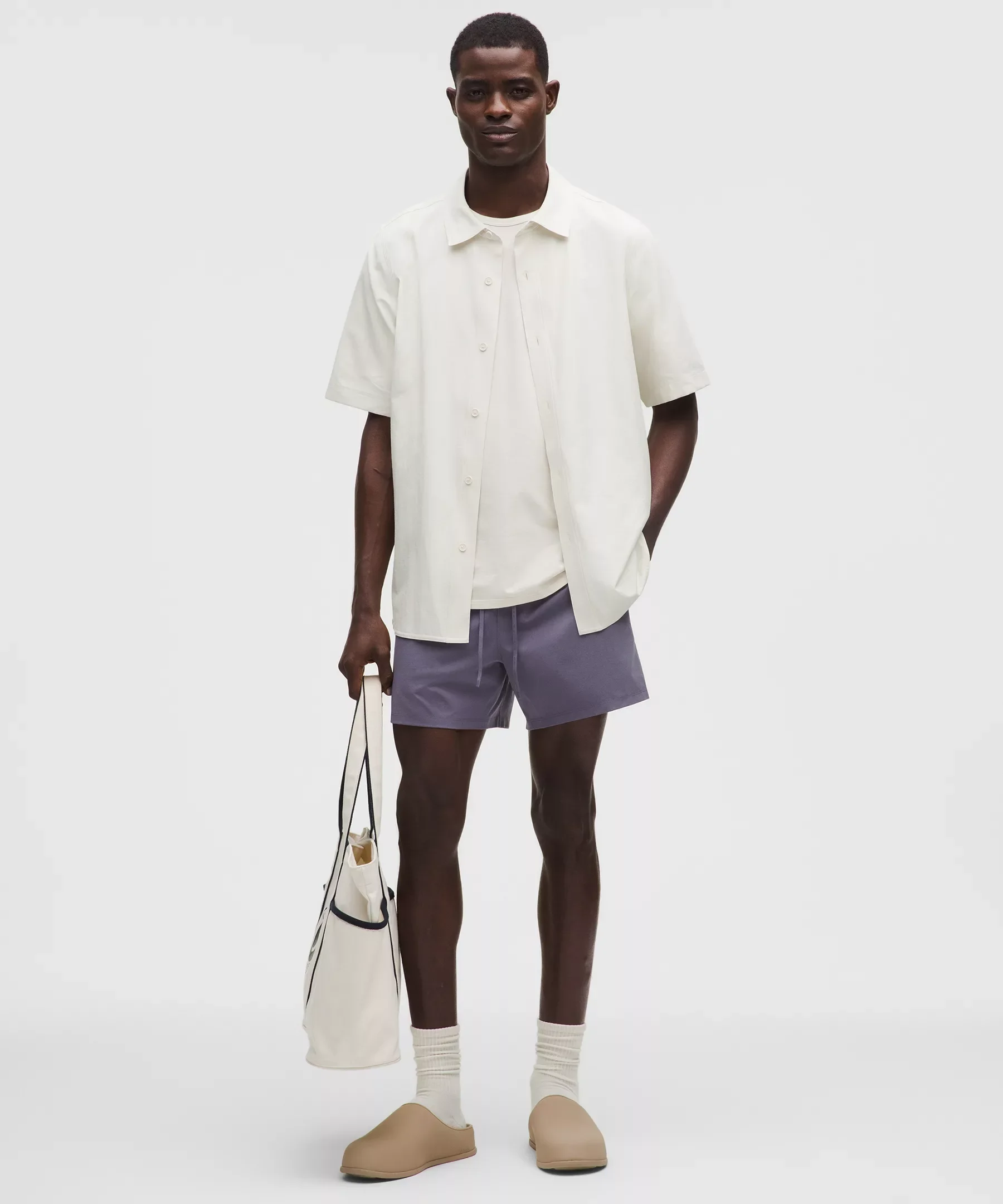 Designed for Swim Water-Repellent Fabric - Water-repellent - Chlorine-resistant - Added stretch - 100% of the polyester in this product is recycled (excluding trims) - This product contains recycled nylon made from repurposed plastic waste Classic Fit, 5" Length - Streamlined fit that gives glutes and thighs breathing room Product Features - Hand pockets, one with a hidden phone sleeve - Back zippered pocket with drainage hole and key loop - Waistband drawcord helps you customize the fit - Silicone artwork on drawcord provides extra grip in the water Material and care Materials Pockets: 80% Recycled Nylon20% Elastane - Body: 52% Recycled Polyester48% Elastomultiester Care Machine Wash Cold - Do Not Bleach - Tumble Dry Low - Do Not Iron - Do Not Dry Clean - Wash With Like Colors