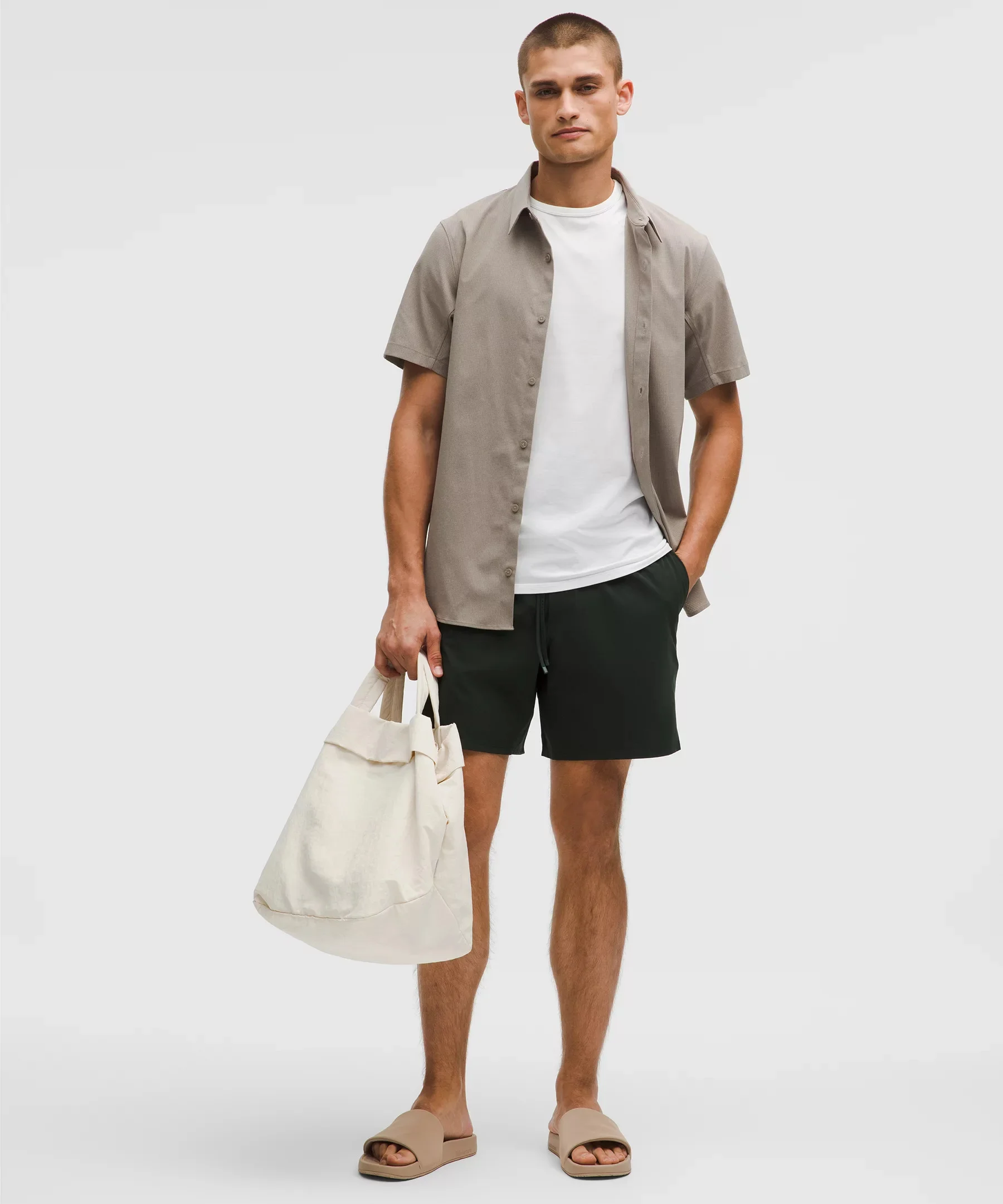 Designed for Swim Water-Repellent Fabric - Water-repellent - Chlorine-resistant - Added stretch - Brief liner is made of breathable mesh fabric - 100% of the polyester in this product is recycled (excluding trims) Classic Fit, 7" Length - Streamlined fit that gives glutes and thighs breathing room Product Features - Hand pockets, one with a hidden phone sleeve - Back zippered pocket with drainage hole and key loop - Silicone artwork on drawcord provides extra grip in the water - Waistband drawcord to customize the fit Material and care Materials Body: 52% Recycled Polyester48% Elastomultiester - Liner: 80% Recycled Polyester20% Elastane - Pockets: 80% Recycled Nylon20% Elastane Care Machine Wash Cold - Do Not Bleach - Tumble Dry Low - Do Not Iron - Do Not Dry Clean - Wash With Like Colors