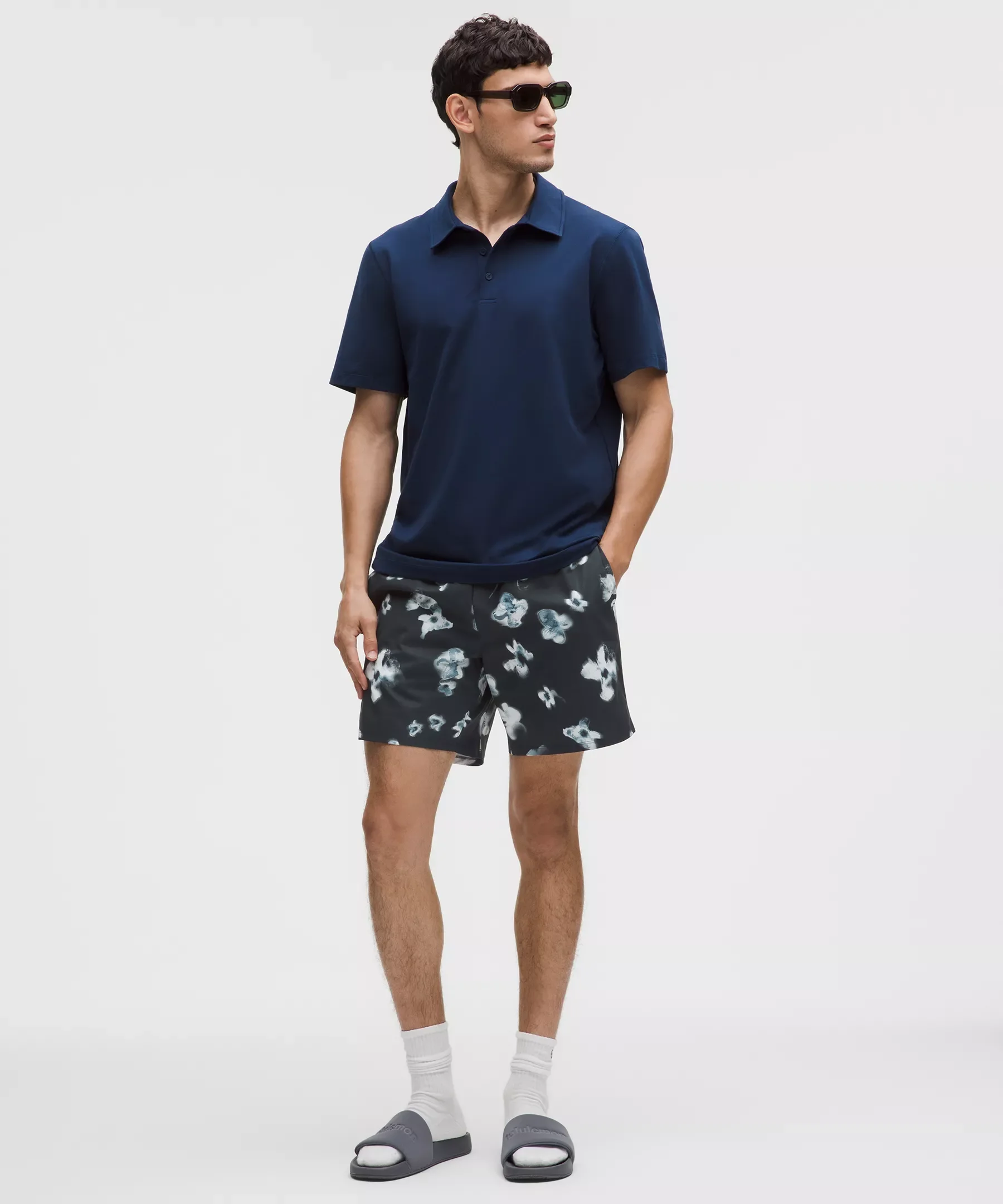 Designed for Swim Water-Repellent Fabric - Water-repellent - Chlorine-resistant - Added stretch - Brief liner is made of breathable mesh fabric - 100% of the polyester in this product is recycled (excluding trims) - This product contains recycled nylon made from repurposed plastic waste Classic Fit, 7" Length - Streamlined fit that gives glutes and thighs breathing room Product Features - Hand pockets, one with a hidden phone sleeve - Back zippered pocket with drainage hole and key loop - Waistband drawcord helps you customize the fit - Silicone artwork on drawcord provides extra grip in the water Material and care Materials Liner: 80% Polyester (recycled)20% Elastane - Body: 52% Polyester (recycled)48% Elastomultiester - Pockets: 80% Nylon (recycled)20% Elastane Care Machine Wash Cold - Do Not Bleach - Tumble Dry Low - Do Not Iron - Do Not Dry Clean - Wash With Like Colors