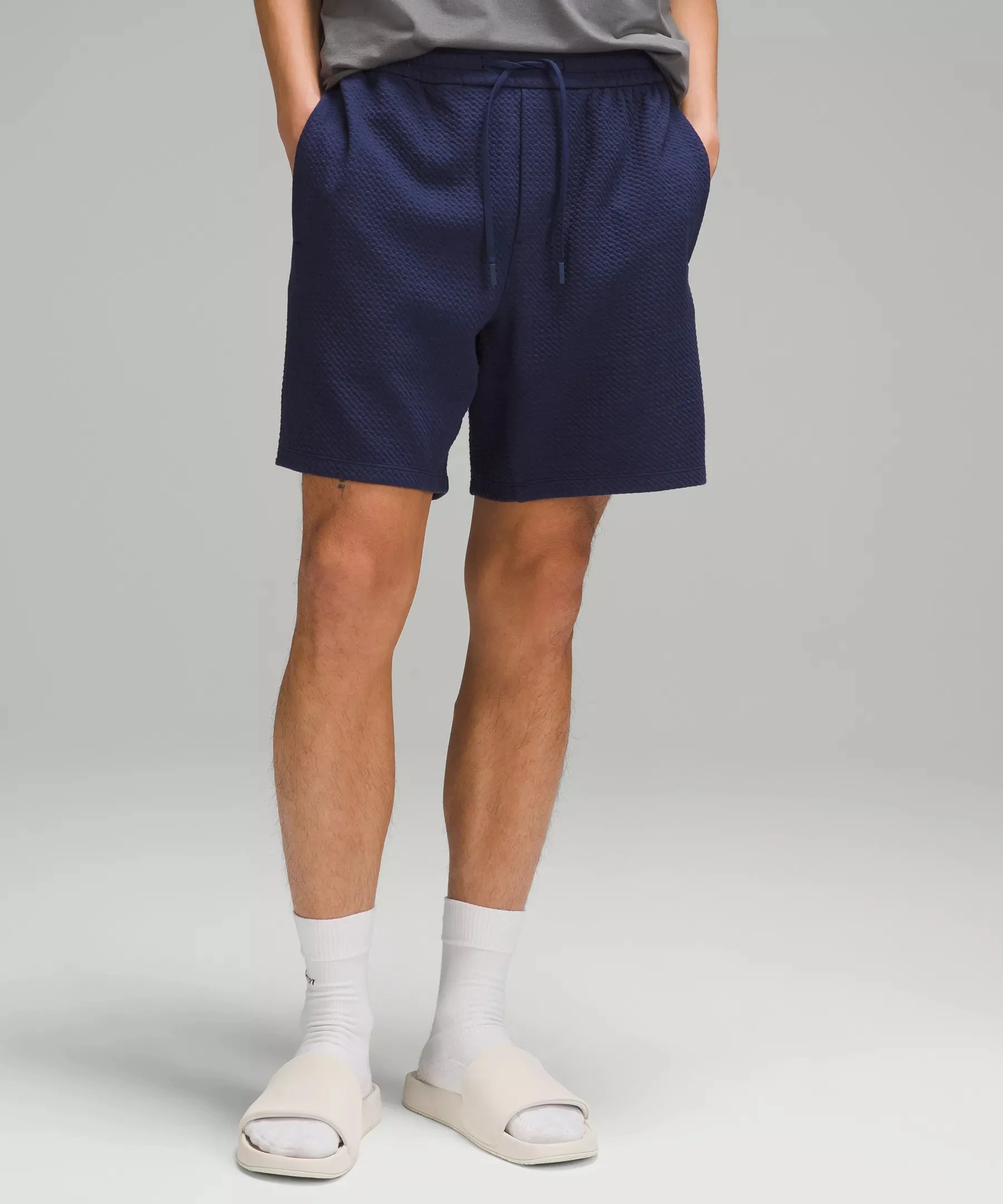 Textured, Cotton-Blend Knit Fabric Naturally breathable Four-way stretch Soft texture Classic Fit, 7" Length Streamlined fit that gives glutes and thighs breathing room Product Features Waistband drawcord can be worn inside or out to give you options and reduce bulk Secure zippered pocket to store your phone and cards Gusset is placed to allow increased mobility Material and care Materials Inner Panel Lining: 89% Recycled Polyester11% Lycra Elastane Pocket Lining: 100% Recycled Polyester Body: 63% Cotton32% Polyester5% Elastane Care Wash with like colours Machine wash cold Do not bleach Tumble dry low Do not iron Do not dry clean