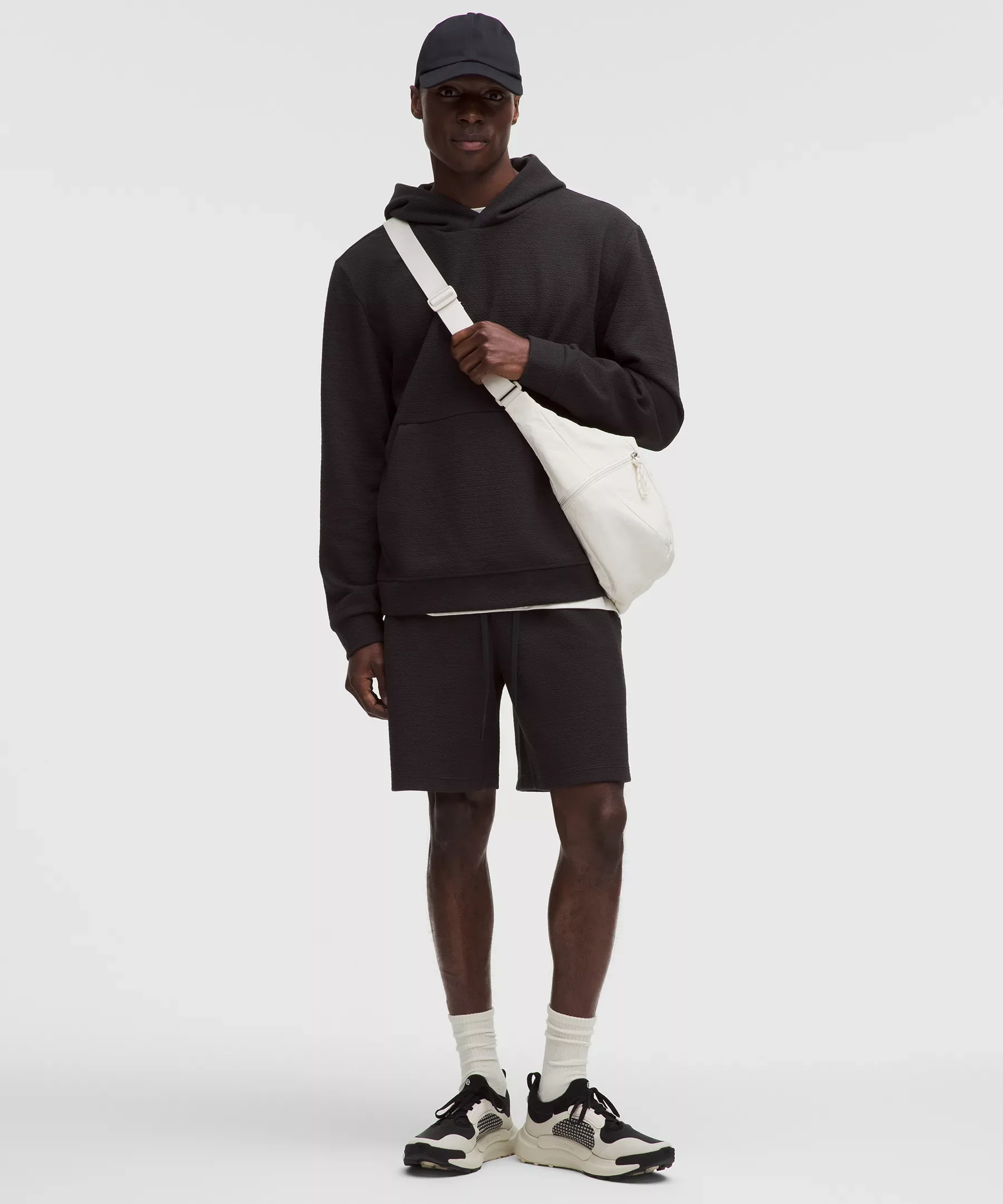 Designed for Casual Softly Textured, Cotton-Blend Spacer Fabric - Soft, crinkled texture - Spacer construction - Sweat-wicking - Quick-drying - Weighty drape - This product contains recycled polyester made from repurposed plastic waste Relaxed Fit, 8" Length - Roomy fit through glutes and thighs Product Features - Hand pockets with hidden phone and coin sleeves - Back zippered pocket - Waistband drawcord can be worn inside or out - Faux fly Material and care Materials Body: 54% Recycled Polyester43% Cotton3% Elastane - Pocket Lining: 100% Recycled Polyester Care Machine Wash Cold - Do Not Bleach - Tumble Dry Low - Do Not Iron - Do Not Dry Clean - Wash With Like Colors
