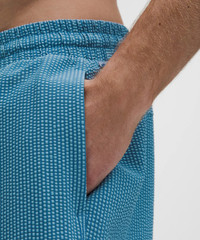 Designed for Swim Chlorine-Resistant, Textured Fabric - Chlorine-resistant - Four-way stretch - Water-repellent - Crinkled texture Classic Fit, 7" Length - Streamlined fit that gives glutes and thighs breathing room Product Features - Hand pockets with hidden phone sleeve - Back zippered pocket with drainage hole and key loop - Silicone artwork on drawcord provides extra grip in the water - Waistband drawcord helps you customize the fit Material and care Materials Pockets: 80% Recycled Nylon20% Elastane - Body: 48% Recycled Nylon43% Nylon9% Elastane Care Machine Wash Cold - Do Not Bleach - Tumble Dry Low - Do Not Iron - Do Not Dry Clean - Wash With Like Colors