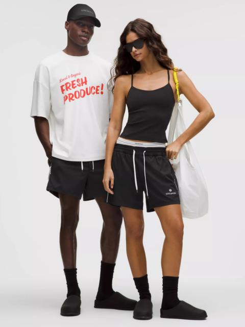 Designed for Casual Sweat-Wicking Fabric - Sweat-wicking - Lightweight - Quick-drying - Added elastane improves stretch and shape retention Relaxed Fit, 5" Length - Roomy fit through glutes and thighs Product Features - Zippered hand pockets, one with a hidden phone sleeve - Back welt pocket with hidden snap closure - Waistband drawcord can be worn inside or out Material and care Materials Pocket Lining: 71% Recycled Polyester29% Lycra Elastane - Body: 94% Nylon6% Elastane Care Machine Wash Cold - Do Not Bleach - Tumble Dry Low - Do Not Iron - Do Not Dry Clean - Wash With Like Colors