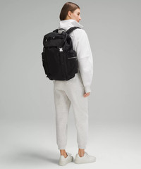 Water-Repellent Fabric Measurements Dimensions: 36cm x 15.5cm x 51cm (14.2" x 6.1" x 20.1") Volume: 25L Product Features Side pockets for quick access to water bottle and small items Zippered exterior pockets Exterior padded pocket fits a 16" laptop Adjustable exterior straps to secure your yoga mat or jacket Trolley-compatible sleeve Interior pockets keep you organized and your sweaty gear separate Material and care Materials Lining: 100% Polyester Back panel: 100% Polyester Body: 100% Nylon Care Spot clean Do not wash Do not bleach Do not tumble dry Do not iron Do not dry clean Imported