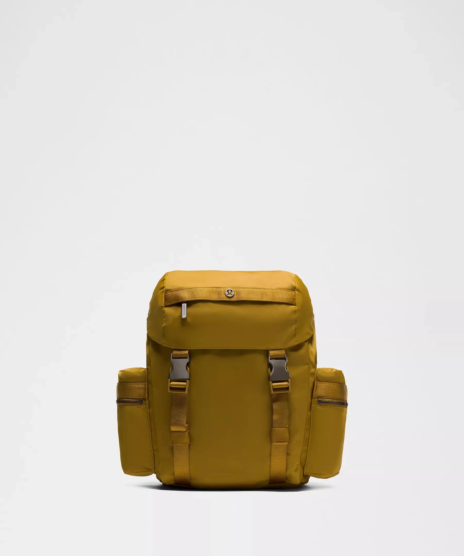 Designed for Casual Water-Repellent Fabric - Water-repellent - 100% of the polyester in this product is recycled (excluding trims) Measurements - Dimensions: 25.5cm x 14cm x 35.5cm (10" x 5.5" x 14") - Volume: 14L - Fits most water bottles up to 32oz (946ml) Product Features - Zippered side pockets - Quick-access zippered pocket on front flap - Interior pocket designed to hold your water bottle - Interior pocket fits a tablet Material and care Materials Body: 94% Nylon6% Elastane - Waistband: 88% Nylon12% Lycra Elastane - Pocket Lining: 86% Recycled Polyester14% Elastane - Palm Side Pocket: 89% Recycled Nylon11% Elastane Care Do Not Wash - Do Not Bleach - Do Not Tumble Dry - Do Not Iron - Do Not Dry Clean - Spot Clean