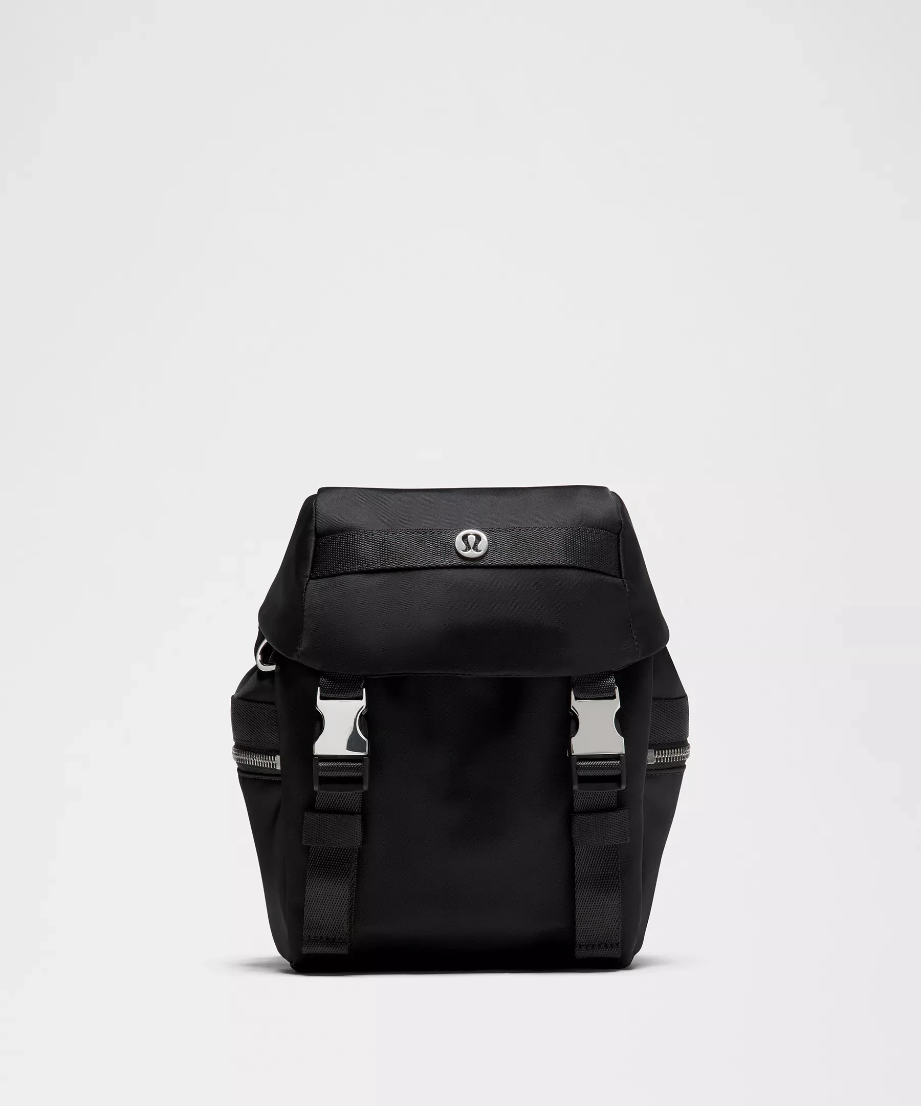 Designed for Casual Water-Repellent Fabric - Water-repellent - 100% of the polyester and nylon in this product is recycled (excluding trims) Measurements - Dimensions: W 16.5cm x D 10cm x H 20cm (6.5" x 3.9" x 7.9") - Volume: 3L Product Features - Adjustable straps can be converted and worn cross-body, on the shoulder, or as a backpack - Keep small items secure in the zippered side pockets - Back slip pocket - Interior pocket keeps tumbler or small water bottle secure - Interior pockets to organize your small items of importance - Cinched main compartment keeps items secure Material and care Materials Body: 100% Recycled Nylon - Lining: 100% Recycled Polyester Care Do Not Wash - Do Not Bleach - Do Not Tumble Dry - Do Not Iron - Do Not Dry Clean - Spot Clean