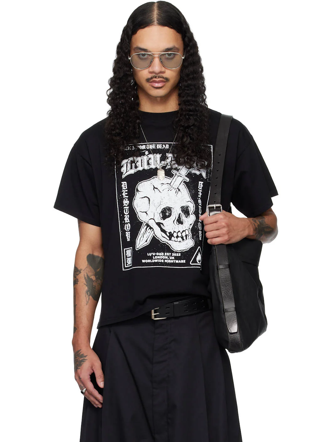 Cotton jersey T-shirt. · Rib-knit crewneck · Logo, graphic, and text printed at front · Dropped shoulders Supplier color: Black/Punk Flyer 100% cotton. Made in Portugal 261331M213013