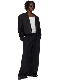 Stretch virgin wool-blend twill trousers. · Wide-leg · Mid-rise · Belt loops · Four-pocket styling · Zip fly · Pleats at front legs Supplier color: Black Body: 53% polyester, 43% virgin wool, 4% elastane. Trim 1: 100% polyester. Trim 2: 100% polyester. Made in Italy 252331M191003