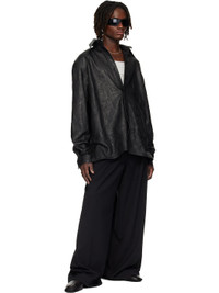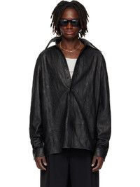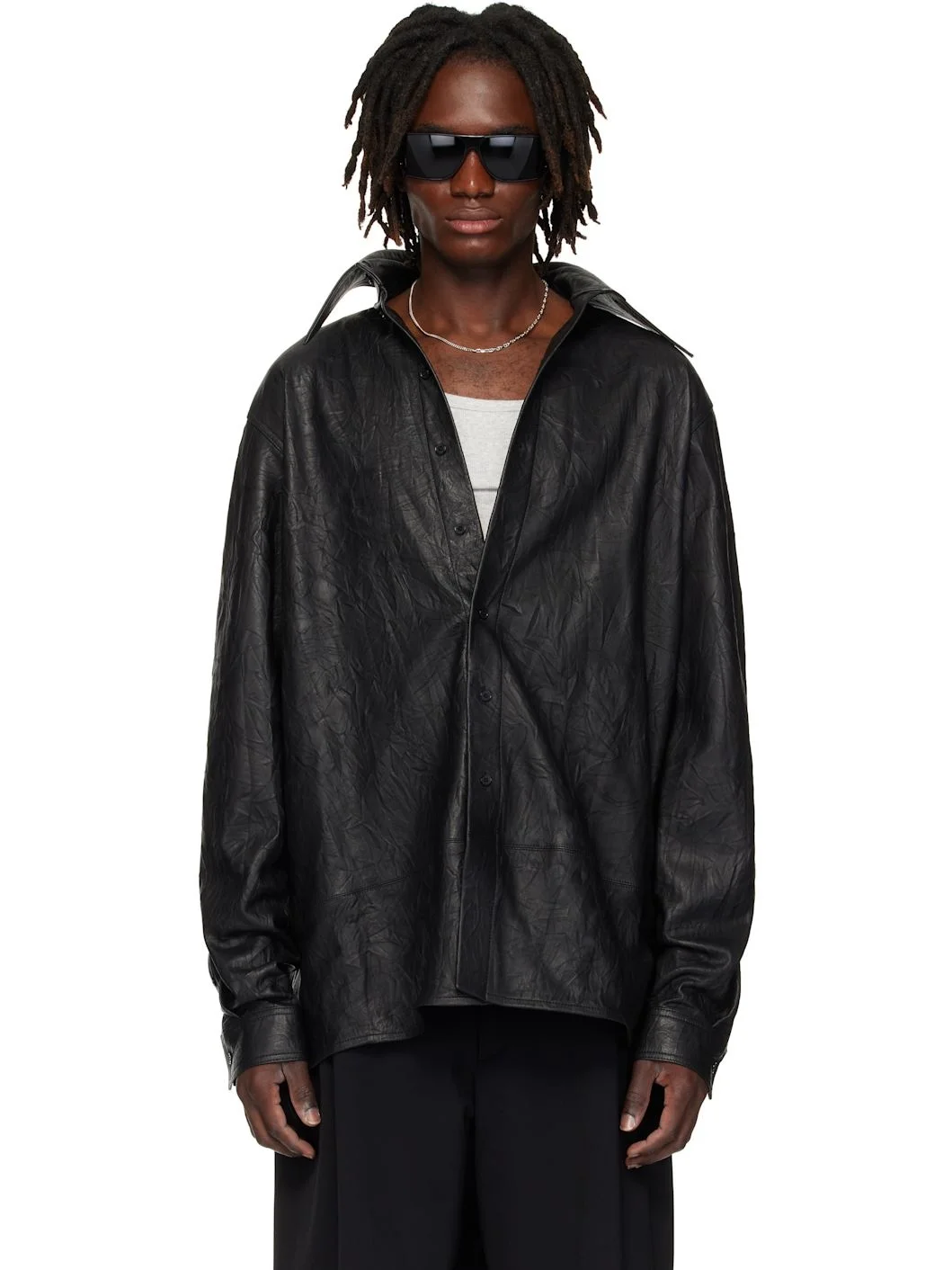 Crinkled grained nappa lambskin jacket. · Topstitched detailing throughout · Spread collar · Button closure · Droptail hem · Buttoned barrel cuffs · Box pleat at back yoke · Unlined Supplier color: Black 100% nappa lambskin. Made in Turkey 252331M192001