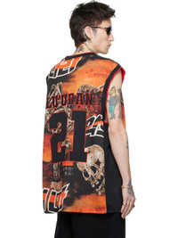 Polyester interlock jersey tank top. Graphic pattern printed throughout. · Striped rib-knit V-neck and armscyes · Logo graphic appliques at front and back Supplier color: Reaper movie 100% polyester. Made in Portugal 251331M214002