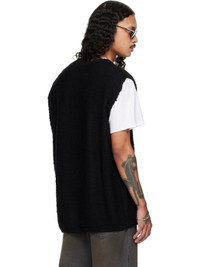 Knit wool sweater vest. · Distressing throughout · Rib-knit crewneck, hem, and armscyes · Jacquard graphic at front Supplier color: Renegade man/Black 100% wool. Made in United Kingdom 252331M201000