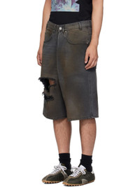 Non-stretch denim shorts. · Wide-leg · Fading, whiskering, smudging, and distressing throughout · Belt loops · Five-pocket styling · Pleat at zip fly · Logo patch at back waistband · Logo-engraved silver-tone hardware Supplier color: Dirty outcast grey Body: 100% cotton. Pocket lining: 65% polyester, 35% cotton. Made in Italy 252331M193001