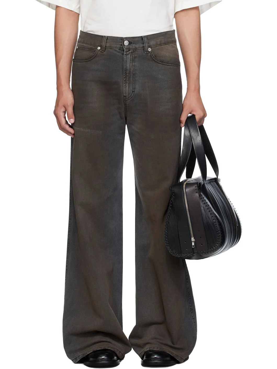 Non-stretch denim jeans. · Wide-leg · Fading, whiskering, smudging, and distressing throughout · Belt loops · Five-pocket styling · Zip fly · Logo patch at back waistband Supplier color: Dirty outcast grey Body: 100% cotton. Pocket lining: 65% polyester, 35% cotton. Made in Italy 252331M186004