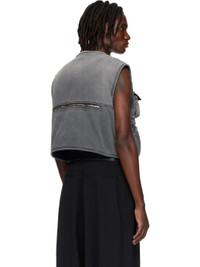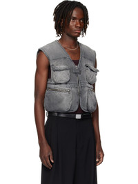 Padded non-stretch denim vest. · Fading throughout · V-neck · Zip closure with press-stud tab · Bellows and flap pockets at front · Zip pocket at back Supplier color: Outcast Grey Body: 100% cotton. Trim: 65% polyester, 35% cotton. Made in Italy 252331M185000