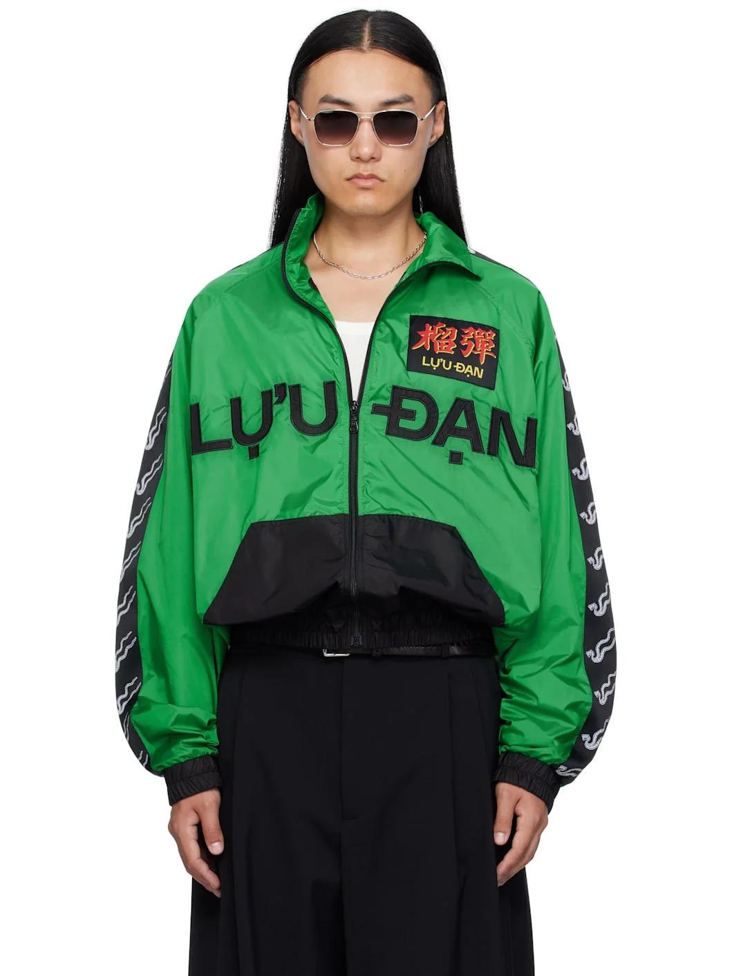Nylon satin jacket. · Stand collar · Zip closure · Logo patch at chest · Embroidered logo at front · Patch pockets at waist · Elasticized hem and cuffs · Jacquard logo trim at raglan sleeves · Full mesh lining Supplier color: Racing green Body: 100% polyamide. Lining: 100% polyester. Made in Portugal 252331M180001