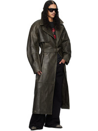 Khaki Bastard Military Leather Trench Coat