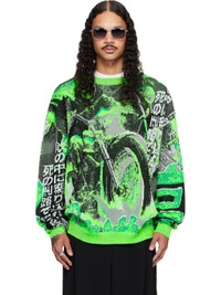 Knit cotton- and recycled polyester-blend sweater. · Jacquard graphic pattern throughout · Rib-knit crewneck, hem, and cuffs · Dropped shoulders Supplier color: Acid green/Black 78% cotton, 22% recycled polyester. Made in United Kingdom 252331M201003