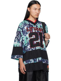 Crinkled jersey T-shirt. · Paneled construction · Graphic printed throughout · Striped rib-knit V-neck · Embroidered logos and text at front and back · Logo patch at front hem · Dropped shoulders Supplier color: Ghost riders 100% polyester. Made in Portugal 252331M213006
