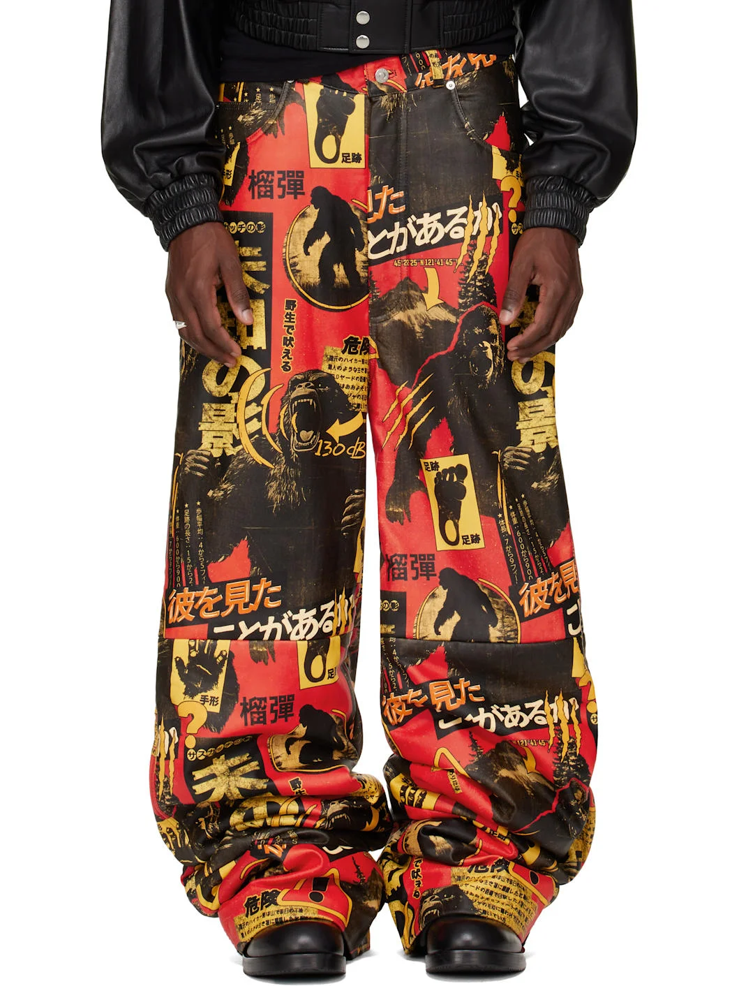 Insulated buffed leather snow pants. · Graphic pattern printed throughout · Belt loops · Five-pocket styling · Zip fly · Velcro tab at cuffs · Logo patch at back waistband · Full satin lining Available exclusively at SSENSE. Supplier color: Printed Body: 100% leather. Lining: 100% cupro. Made in Turkey 261331M189000