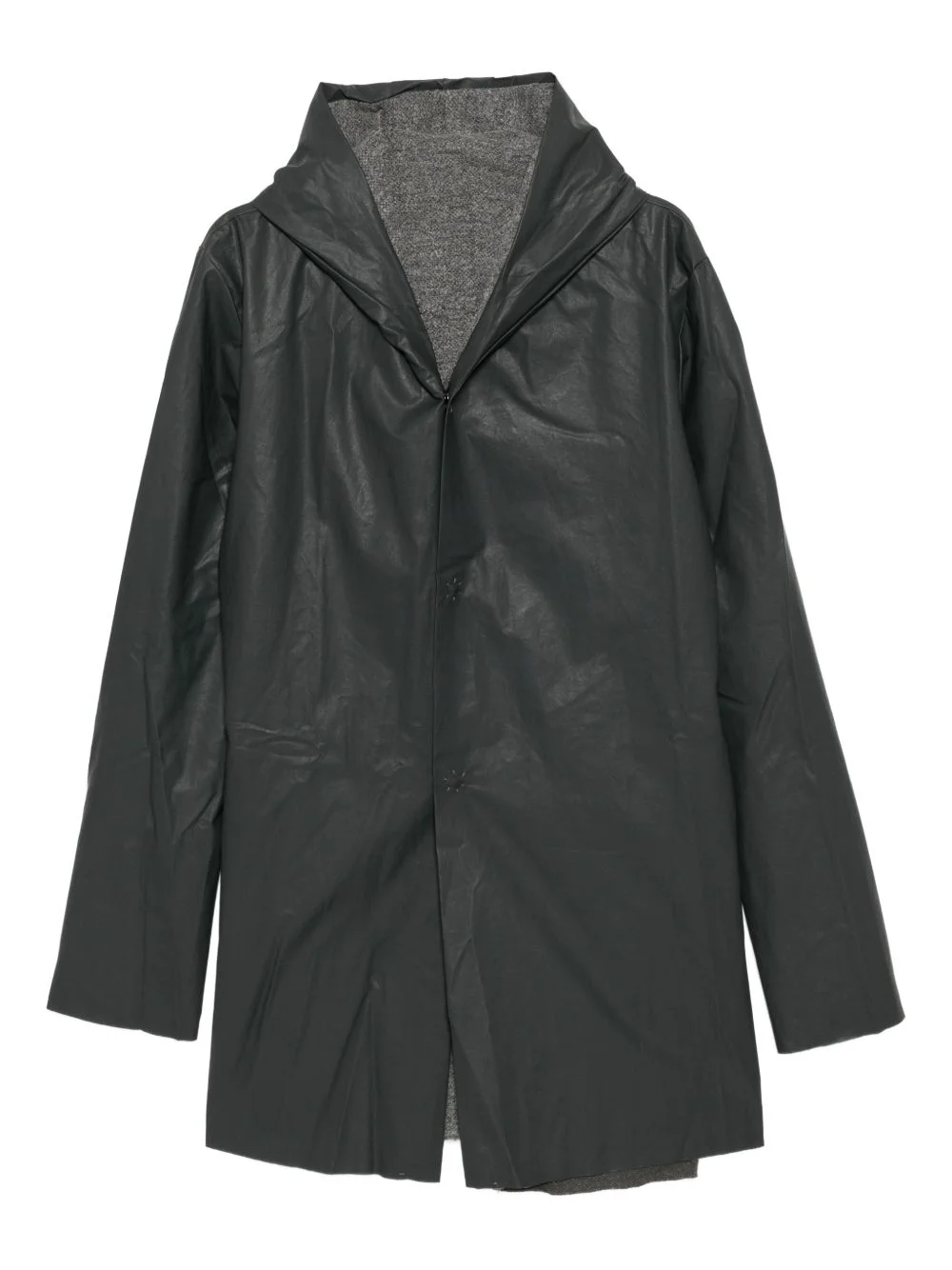 hooded tight coat Highlights - Black - Front buckle fastening - Classic hood - Two side welt pockets Made in Italy Composition Cotton 50%, Wool 50% SIZE & FIT Model measurements Height 6 ft 2 in(1.87 m) Bust/Chest 33.07 in(84 cm) Hips 35.43 in(90 cm) Waist 26.77 in(68 cm) FittingInformation Designed to be unstructured, offering a loose fit throughout Made from a midweight non-stretch fabric, this piece offers minimal elasticity when worn Washing instructions Dry Clean Only