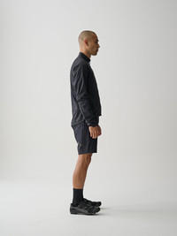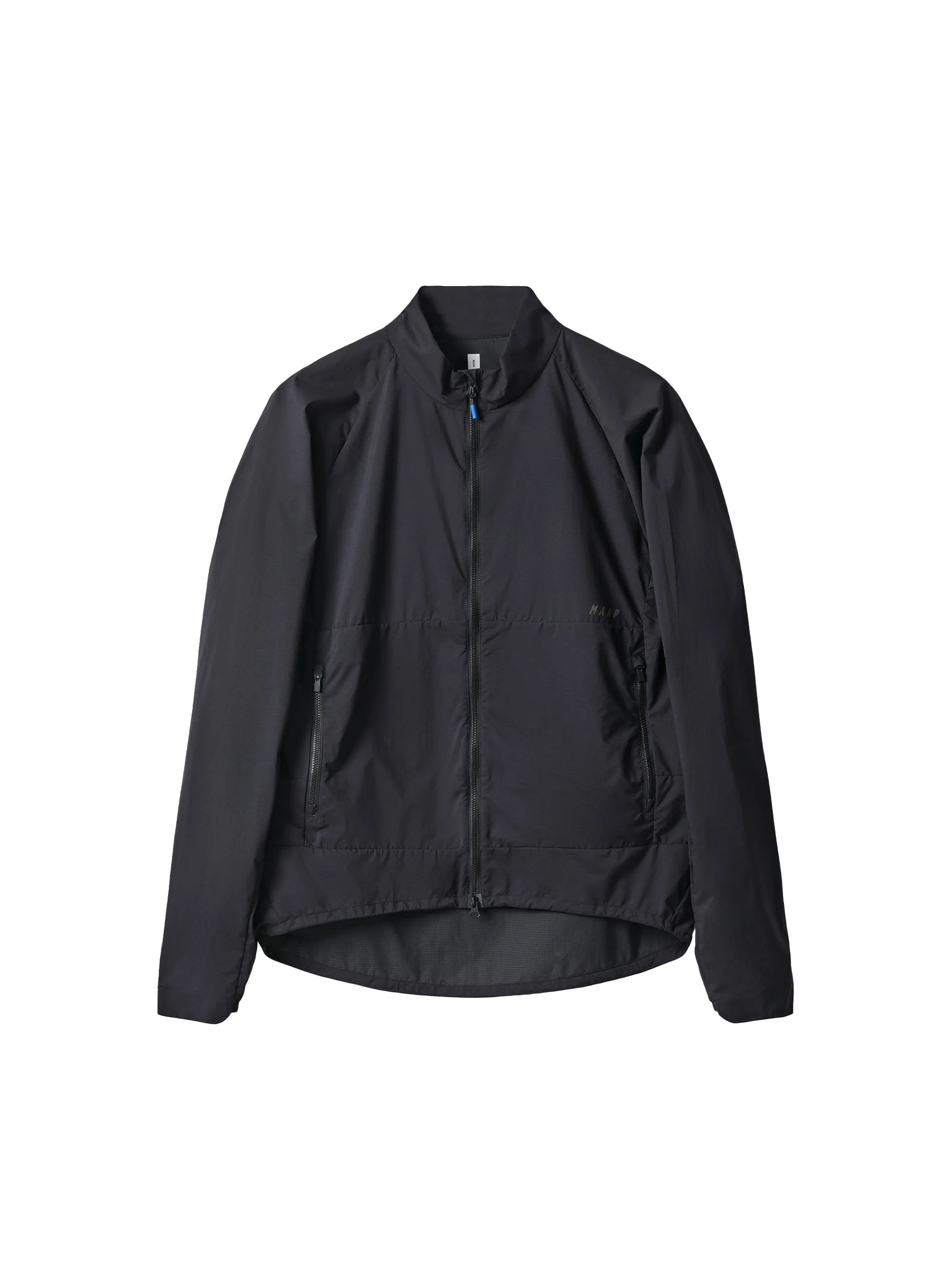 Withstand the elements with the Alt_Road™ Wind Jacket. Windproof fabrics provide ultimate protection, while the slim profile and waist cinch lets you dial in your fit. Side pockets offer storage and a casual vibe when you're no longer pedalling. Details - Windproof - Lightweight - Packable Features - Optimising on-bike functionality and freedom of movement with a slim fit that doesn't compromise off-bike modesty. - The lightweight windproof Pertex® Equilibrium shell features a texturised back to enhance next-to-skin airflow. - Substantial secure storage is offered through two front zippered pockets. - Tune in your ideal fit with the adjustable cinch hem. - Protection from the elements in every detail with an elasticated cuff that sits deep on the wrist. - Warming up and need to delayer? Packs down quickly into the internal side pocket for an easy stash-and-go solution. - Extra visibility in low light conditions with reflective heat transfers and tabs. Specifications - Product Weight: 180 g - Main Fabric Content: 52% Recycled Nylon, 38% Nylon, 10% Polyester - Fit: Slim - Temperature Range: 6-16 DEGREES - Riding Conditions: Cold - SKU: MPMJA220524_BLAK