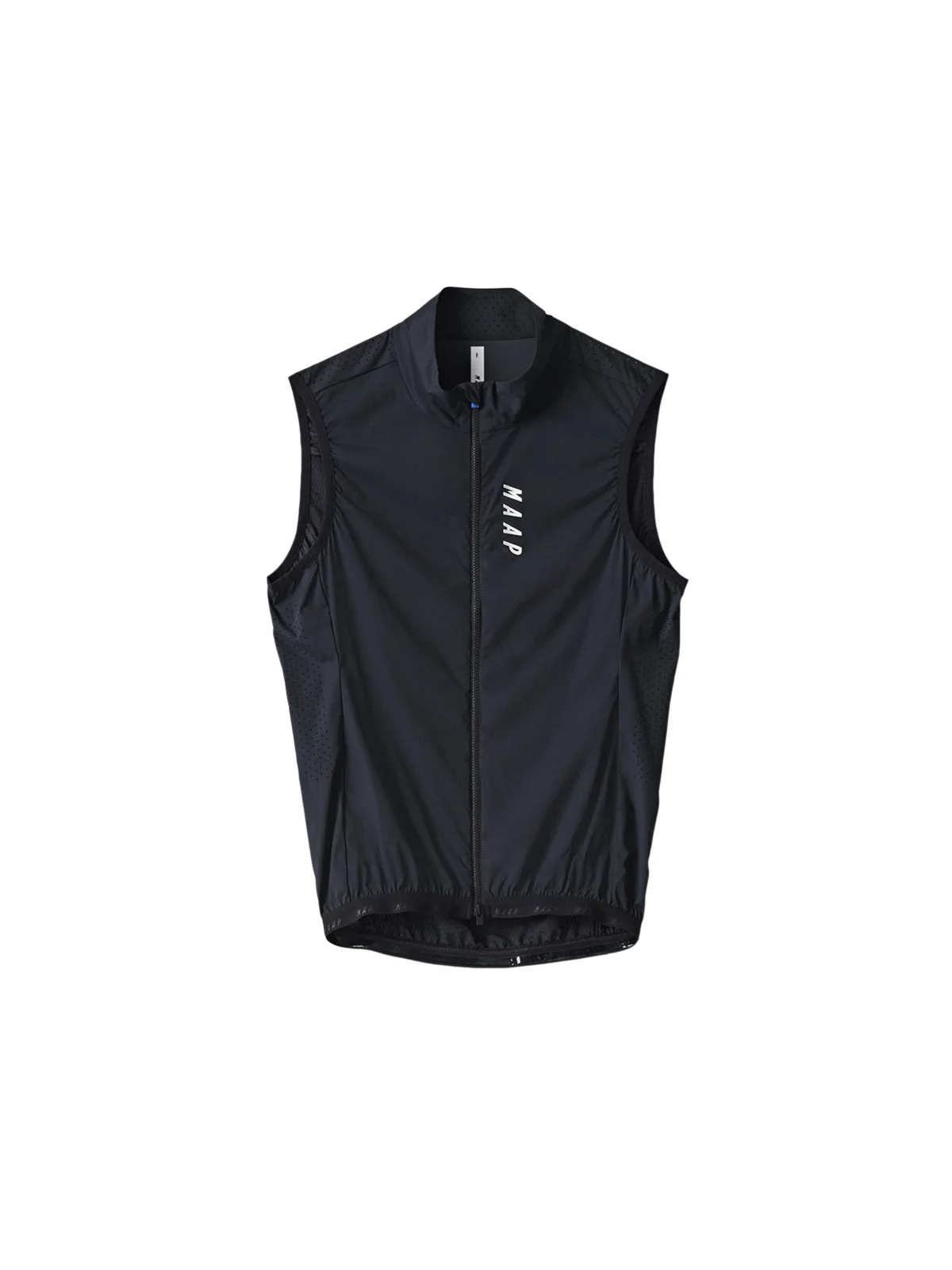 The Draft Team Vest uses our lightest-weight, most wind-resistant material for the ultimate stashable vest. Constructed from 2-way mechanical stretch fabric for an elevated fit. With strategically placed lazer cut panels, breathable mesh and a 2-way zip, you can dial in your airflow whether climbing mountains or ripping the descent. Details - Windproof - Lightweight - Packable Features - The wind-blocking Ripstop body fabric features a mechanical stretch that provides protection from the elements without compromising on an elevated fit - A high-stretch mesh back panel optimises air-flow and breathability where you need it most - Lazer-cut ventilated panels ensure temperature regulation when the tempo is rising - The 2-way YKK zip with camlock puller lets you dial in your air flow needs, while the internal zip guard makes zipping and unzipping seamless Specifications - Product Weight: 102 g - 3.60 oz - Main Fabric Content: 89% Polyamide, 11% Elastane - Fit: Race - Temperature Range: 14-20 DEGREES - Riding Conditions: Wind - SKU: MAP-MAV074_BLK