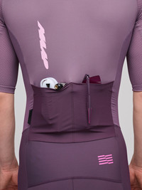Chasing speed starts here. The Eclipse Pro Race Suit delivers aerodynamic shaping and a compressive fit designed to keep you efficient when it matters, under pressure, or in the red, engineered for the moments that define the race. Details - 4 Way Stretch - Compression Fabrics - Breathable - Moisture Wicking - Reflective Graphics - Italian Fabric - Recycled Yarns Features - A seamless fit and enhanced traction with the raw cut leg hem and internal low-profile silicone gripper. - Considered storage with minimal bulk through compact dual rear pockets. - Amping up ventilation and ensuring quick nature breaks with a two-way zipper for Men. - Sustainably preferred materials are featured on the upper body and sleeve fabrics. - Experience ultimate comfort with MAAP's 3D Thermo Moulded chamois, featuring Eco X-tract fabric and breathable anatomical construction. Specifications - Product Weight: 260g - Main Fabric Content: Main Body: 70% Polyamide (Recycled), 30% Elastane, Sleeves: 78% Polyamide (Recycled), 22% Elastane, Lower: 80% Polyamide, 20% Elastane - Fit: Race - Temperature Range: 18 - 35 DEGREES - Riding Conditions: Hot - SKU: MPMSK250225_BERY