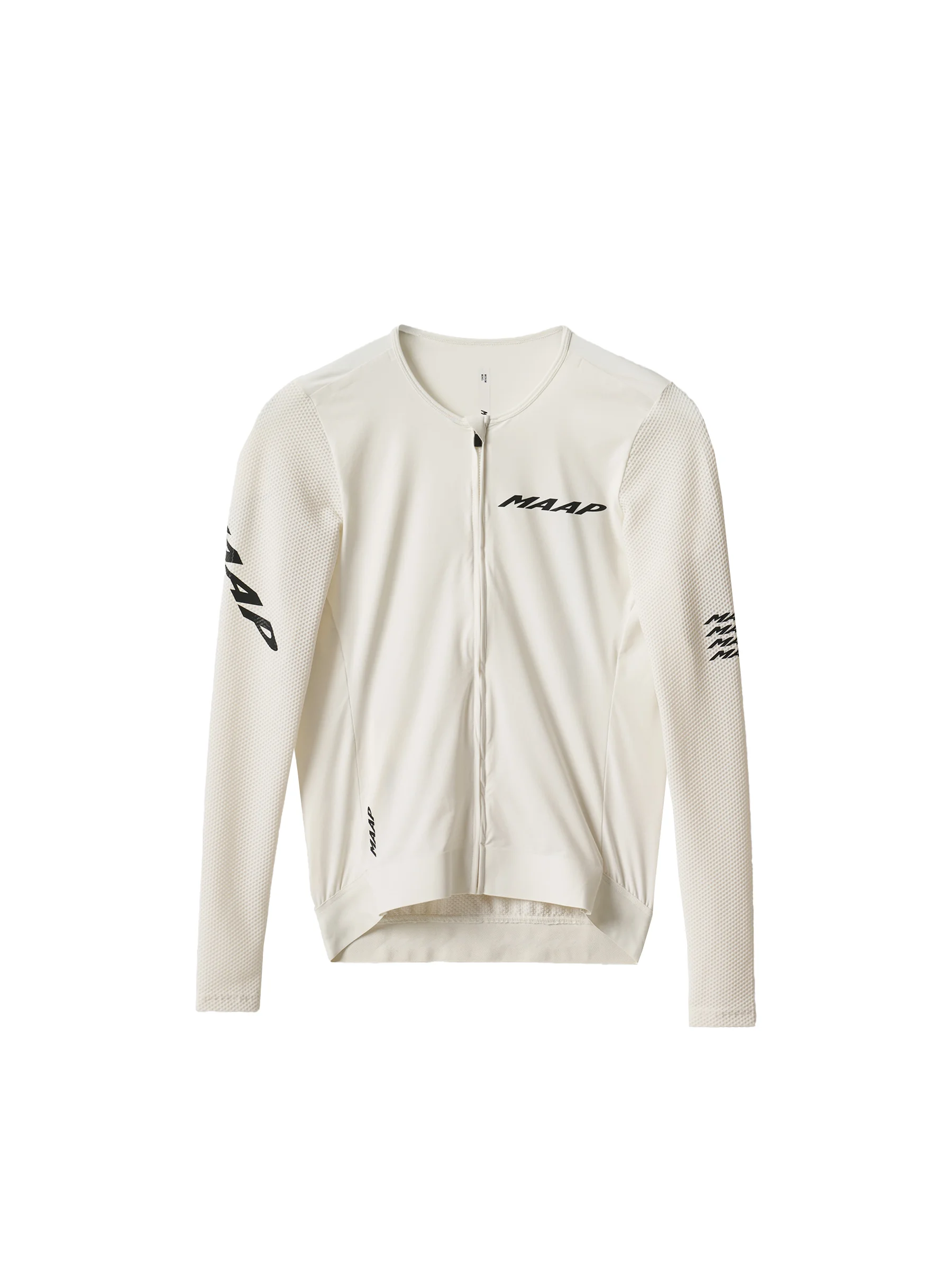 The Emerge Long Sleeve Jersey, where velocity meets versatility, delivers a compressive second-skin profile engineered to elevate everyday performance. Sustainably crafted with ultra-soft, moisture-wicking fabrics, it amplifies fit, form, and precision-comfort across tempo efforts, recovery spins, and everything in between. Details - Recycled Yarns - MAAP Honeycomb - Italian Fabric - bluesign® APPROVED Fabric - Moisture Wicking - Breathable - Reflective Graphics Features - Ultra-soft and recycled knitted Italian fabric across the main body offers comfort and performance without compromising MAAP’s commitment to sustainability. - Optimal shape, structure and breathability delivered with recycled honeycomb mesh sleeves. - The compressive, second-skin Race Fit paired with a low-profile collar elevates everyday performance. - An upgraded bonded shoulder construction reduces bulk for a refined, streamlined profile from the hoods to the drops. - Additional storage with a sleek and secure low-profile internal rear zip pocket. - Extra visibility in low light conditions with reflective print transfers and tabs. Specifications - Product Weight: 180g - Main Fabric Content: Main: 70% Recycled Nylon, 30% Elastane, Sleeves: 78% Recycled Nylon, 22% Elastane - Fit: Race - Temperature Range: 18 - 35 DEGREES - Riding Conditions: Hot - SKU: MPMLS252425_VAPR