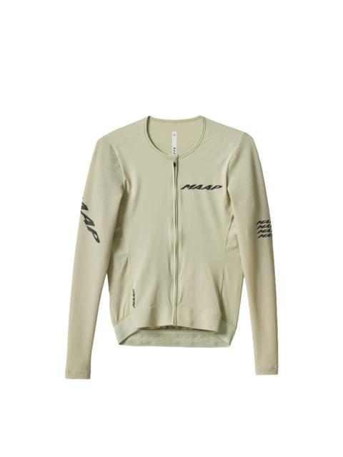 The Emerge Long Sleeve Jersey, where velocity meets versatility, delivers a compressive second-skin profile engineered to elevate everyday performance. Sustainably crafted with ultra-soft, moisture-wicking fabrics, it amplifies fit, form, and precision-comfort across tempo efforts, recovery spins, and everything in between. Details - Recycled Yarns - MAAP Honeycomb - Italian Fabric - bluesign® APPROVED Fabric - Moisture Wicking - Breathable - Reflective Graphics Features - Ultra-soft and recycled knitted Italian fabric across the main body offers comfort and performance without compromising MAAP’s commitment to sustainability. - Optimal shape, structure and breathability delivered with recycled honeycomb mesh sleeves. - The compressive, second-skin Race Fit paired with a low-profile collar elevates everyday performance. - An upgraded bonded shoulder construction reduces bulk for a refined, streamlined profile from the hoods to the drops. - Additional storage with a sleek and secure low-profile internal rear zip pocket. - Extra visibility in low light conditions with reflective print transfers and tabs. Specifications - Product Weight: 180g - Main Fabric Content: Main: 70% Recycled Nylon, 30% Elastane, Sleeves: 78% Recycled Nylon, 22% Elastane - Fit: Race - Temperature Range: 18 - 35 DEGREES - Riding Conditions: Hot - SKU: MPMLS252425_BLAK