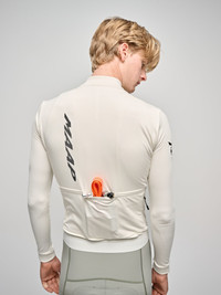 The Emerge Thermal Long Sleeve Jersey delivers targeted warmth and breathability when temperatures drop. Engineered from brushed fleece with majority recycled yarns, it locks in heat and manages moisture for performance that thrives in the cold. Details - Recycled Yarns - Thermal Regulation - 4 Way Stretch - Breathable - UPF 50+ Protection - Reflective Graphics Features - Soft, next-to-skin comfort with European brushed fleece, engineered from majority recycled yarns for warmth that’s conscious as well as cosy. - Amplified warmth with internal sleeve texture for an insulated, close-contact feel. - Enhanced comfort and heat retention with a bonded front zip guard. - Reduced bulk with bonded finishes for a sleek, streamlined profile from hoods to drops. - Extra visibility in low light conditions with reflective print transfers and tabs. Specifications - Product Weight: 180g - Main Fabric Content: Main: 94% Recycled Polyester, 6% Elastane, Sleeves: 95% Recycled Polyester, 5% Elastane - Fit: Race - Temperature Range: 6 - 16 DEGREES - Riding Conditions: Cold - SKU: MPMLS252525_VAPR